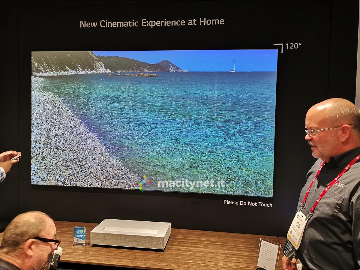 LG Electronics al CES di Las Vegas ha presentatato la seconda generazione dei suoi videoproiettori Laser 4K Ultra HD (il modello HU85L) con tecnologia a tiro corto (“Ultra Short Throw”, UST). Il nuovo videoproiettore, vincitore dell’Innovation Award del CES 2019, modello HU80K, si distingue per per design compatto e la capacità di proiettare immagini in 4K su qualsiasi superficie piana – una parete, un pavimento o un soffitto.