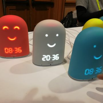 Per i bimbi più grandi, il dispositivo può essere utile per regolare la routine che favorisce il sonno, stabilendo l’ora della nanna, fattore importante che influisce positivamente sul loro sviluppo. La faccia sorridente sul dispositivo si illumina quando è ora di andare a dormire, agli orari prestabiliti che i genitori possono controllare con un’app.