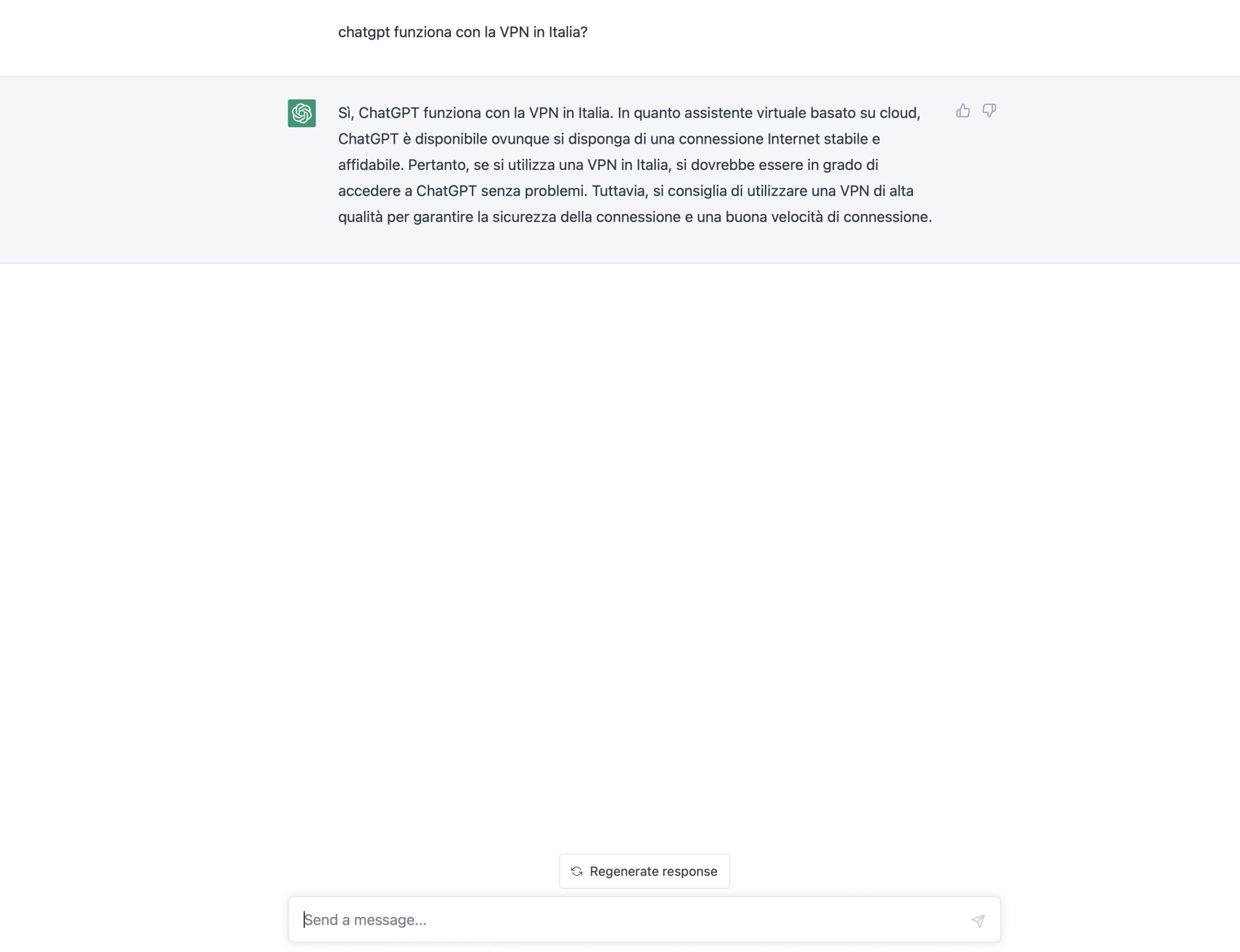 La migliore alterativa a ChatGPT è ChatGPT. Sì, sappiamo che non è una alternativa, ma vogliamo intendere che c’è ancora modo di utilizzarlo in Italia. E’ sufficiente, infatti, una VPN in grado di “trasportarvi” fittiziamente in un altro Paese. Ovviamente, a vostro rischio e pericolo: se il Garante ha ritenuto di bloccare il chatbot per motivi di Privacy, il suo utilizzo potrebbe mettere i vostri dati a rischio. Ad ogni modo, a questo articolo avevamo indicato le migliori VPN da scegliere. Dopo esservi collegati alla VPN, l’accesso a ChatGPT tornerà funzionante a partire da questo indirizzo, così come funzioneranno le risposte in lingua italiana.