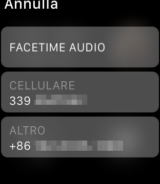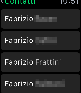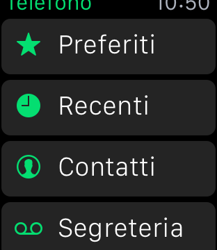 E’ anche possibile premere il pulsante laterale e selezionare con la corona digitale uno dei contatti preferiti precedentemente inseriti nell’apposita schermata. Da qui, premendo l’icona con la cornetta sarà possibile avviare la chiamata.