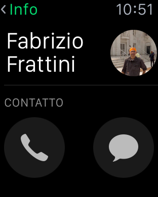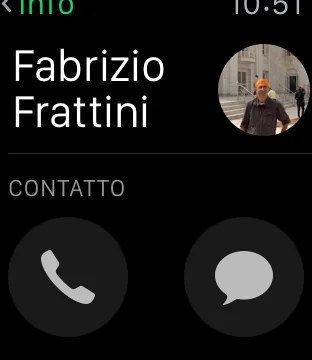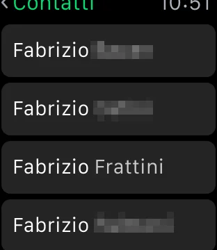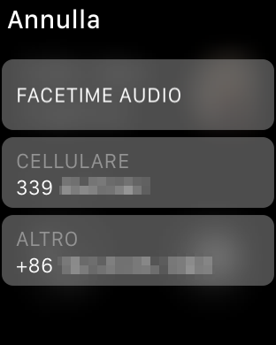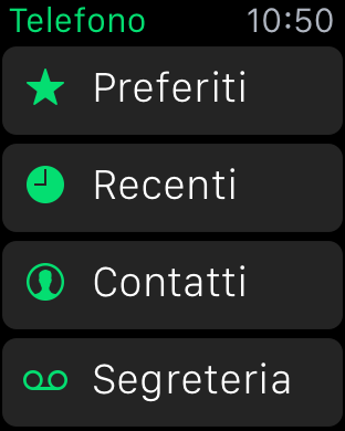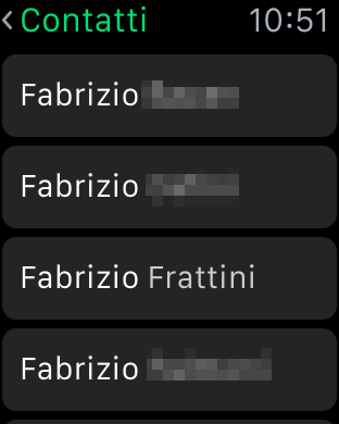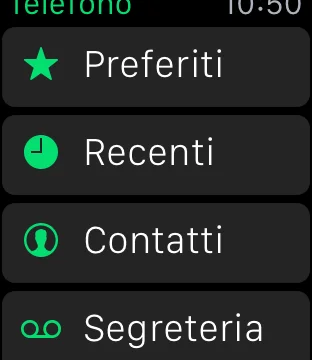E’ anche possibile premere il pulsante laterale e selezionare con la corona digitale uno dei contatti preferiti precedentemente inseriti nell’apposita schermata. Da qui, premendo l’icona con la cornetta sarà possibile avviare la chiamata.