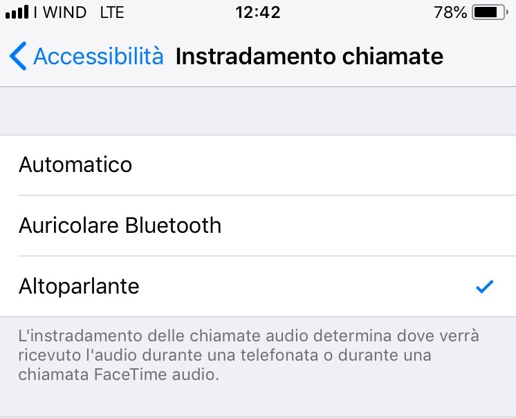 Dal menu che si apre in questo modo è possibile scegliere diverse opzioni. Selezionando l’opzione Altoparlante ogni qual volta si risponderà ad una chiamata, l’audio della conversazione sarà immediatamente riprodotto in vivavoce, senza passare dalla capsula interna di iPhone. Durante la conversazione, ovviamente, sarà sempre possibile decidere se instradare la conversazione verso l’altoparlante interno e tornare quindi alla funzione di default.