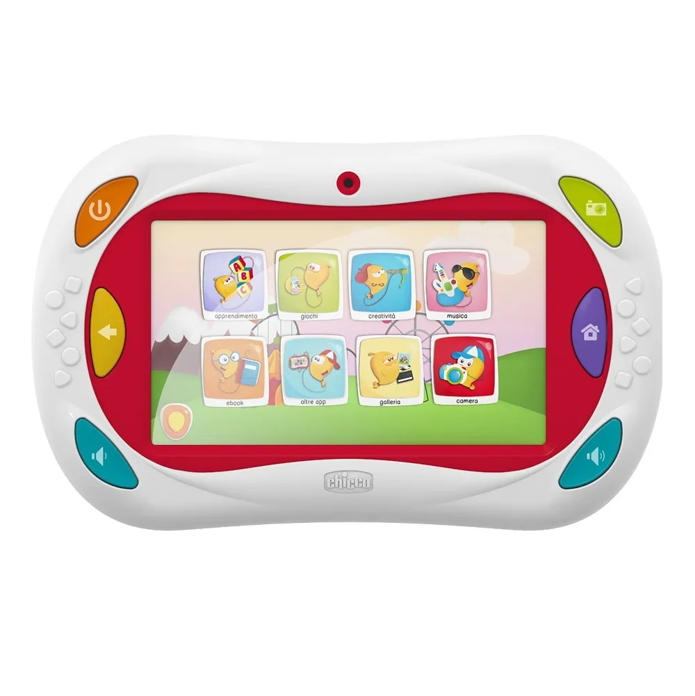 Chicco Happy Tablet è fornito con 26 app pre-installate create per stimolare gli interessi dei bimbi ed accompagnarli durante lo sviluppo, con giochi e software dedicati al linguaggio, alla coordinazione delle mani, logica e creatività. I bimbi non possono accedere a Internet, il Wi-Fi è integrato, ma lo possono fare i genitori per scaricare nuove app e contenuti, oltre che per gli aggiornamenti: è disponibile l’app market con 40.000 app. La sicurezza durante l’uso è completa per i bimbi, mentre i genitori possono creare più profili con immagine avatar e app diversi per ogni bimbo oltre che limitare il tempo di utilizzo delle app.