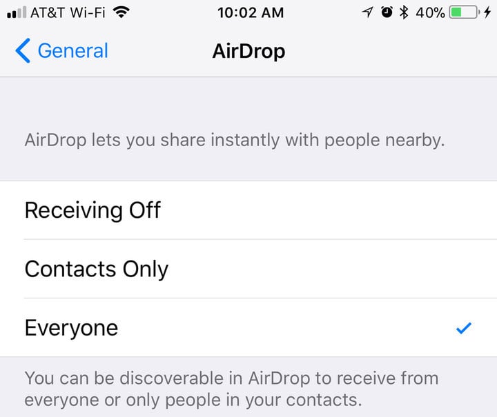 Altra novità riguarda AirDrop. In iOS 10, l’unico modo per visualizzare le impostazioni AirDrop è attraverso il Pannello di controllo. Sulla beta 4 iOS 11, Apple ha aggiunto queste impostazioni anche in una sezione dedicata all’interno di Impostazioni. Si trova sotto la voce Generali-> AirDrop. Da qui è possibile decidere se condividere i file con: Solo contatti, Tutti o spegnere direttamente la funzionalità.