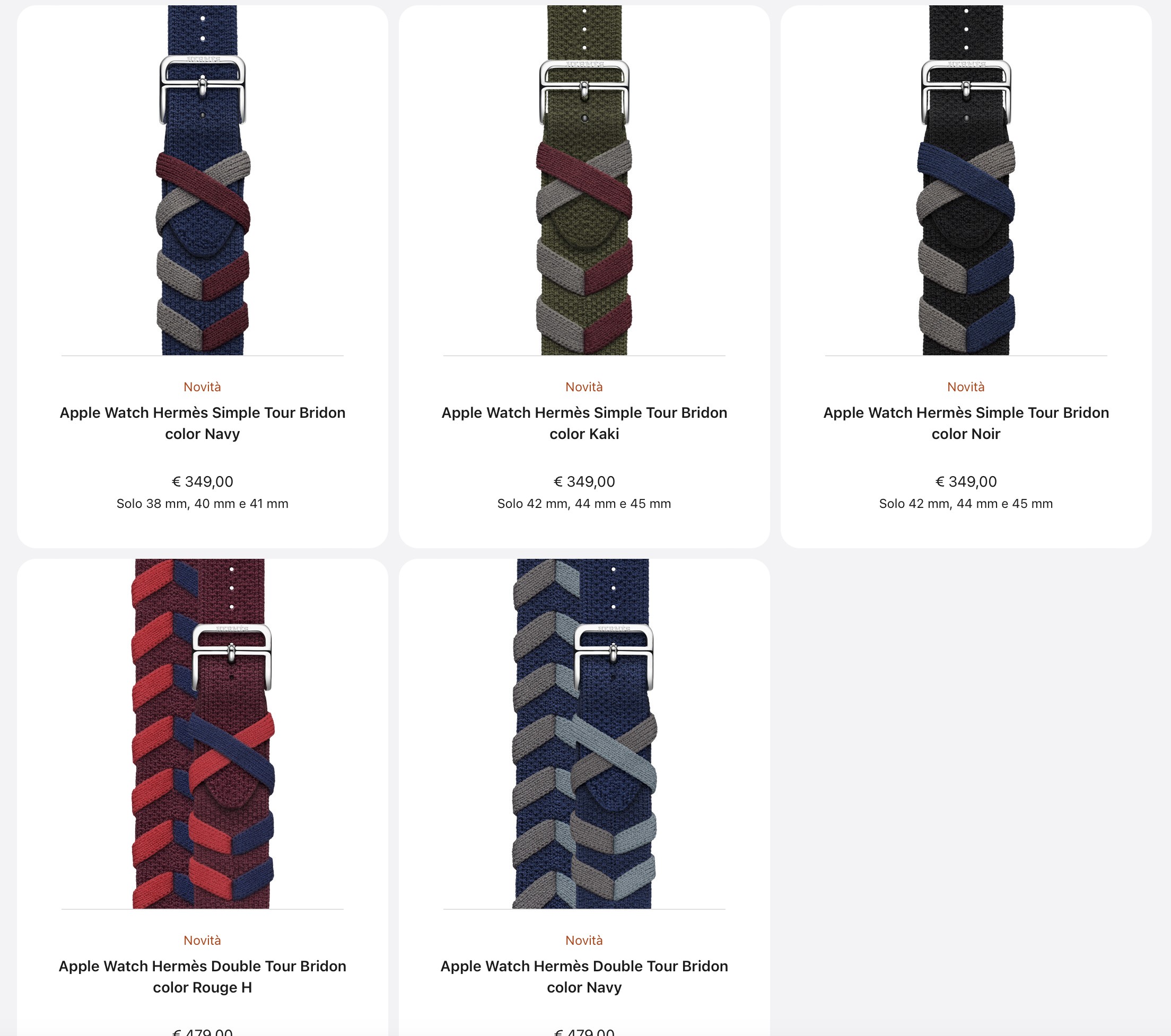 Si tratta di cinturini in tessuto a maglia a trama continua, intrecciato a mano per creare un motivo chevron tridimensionale. Il costo è di 349 euro per i modelli Rougue H, Navy, Kaki e Noir, mentre per le varianti con doppio intreccio Rouge H e color Navy il costo è di 479 euro.