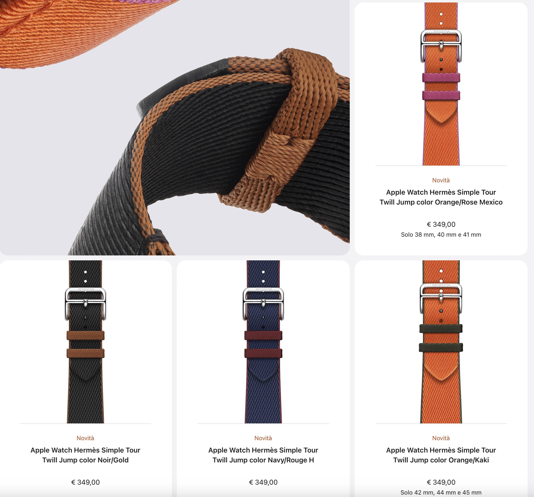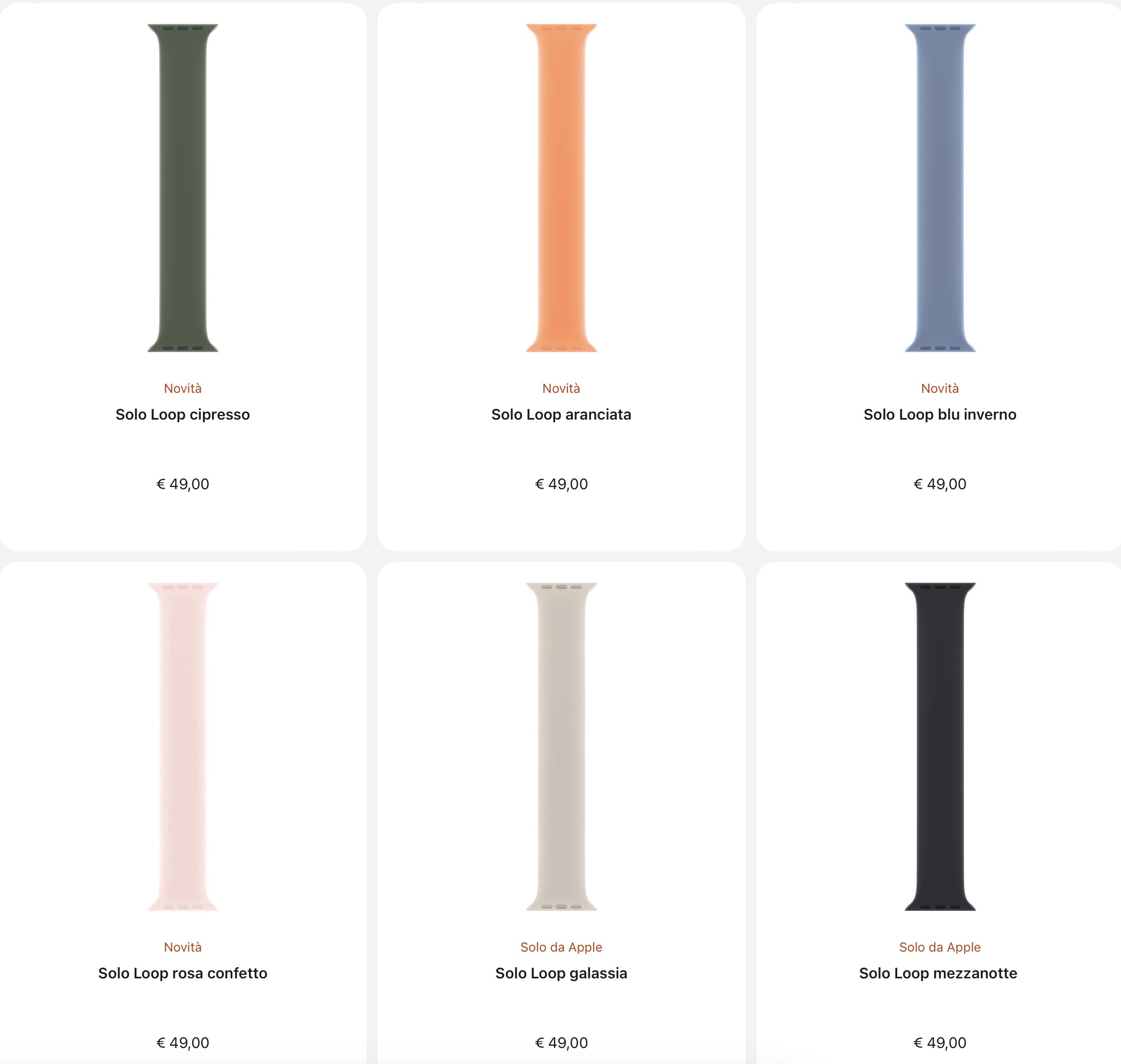 Si parte dallo Sport Loop, che ha un prezzo di 49 euro, fatti in Nylon morbido e leggero, con chiusura hook-and-loop e una fitta trama. Adesso sono disponibili nuovi colori, tra cui blu inverno, cipresso, rosa confetto, galassia e mezzanotte.