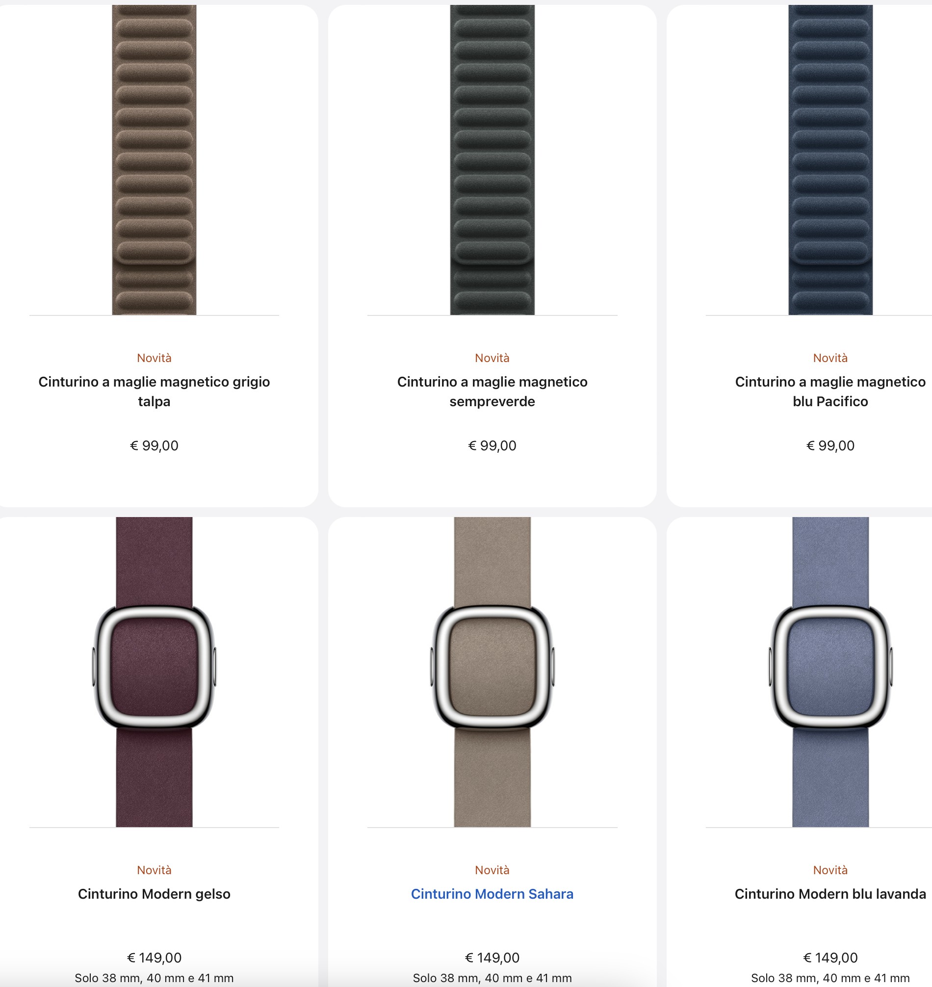 Le varianti a maglie magnetico costano 99 euro, mentre il modello Modern ha un costo di 149 euro. Quest’ultimo, peraltro, è disponibile solo per Apple Watch 38, 40 e 41 mm.
