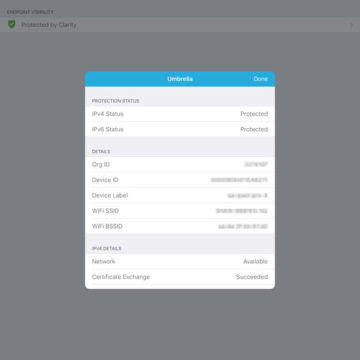 Cisco ha sviluppato l’app Cisco Security Connector su iOS 11 per offrire alle aziende una visibilità puntuale e granulare degli accessi alla rete dai dispositivi iOS aziendali. La soluzione offre le funzionalità di sicurezza di Cisco Umbrella e quelle di Cisco Clarity combinate in un’unica applicazione. La soluzione può essere implementata su dispositivi iOS gestiti dall’azienda utilizzando una soluzione di management dei dispositivi mobili (MDM) come Cisco Meraki Systems Manager.