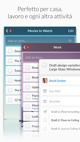 La versione “dei poveri” degli strumenti per fare liste di to-do, con una marcia in più rispetto ad altre offerte free disponibili su iTunes. A partire dal fatto che Wunderlist si può sincronizzare senza problemi e, se si desidera fare l’acquisto in-app, renderla anche completa quasi a livello della concorrenza più blasonata. La cosa interessate di questa app è che viene utilizzata quotidianamente da milioni di persone, e che permette di fare cose che i puristi delle liste di to-do non ritengono necessarie: condividere liste, collegare documenti, note, Pdf e immagini ai to-do, cambiare gli sfondi, delegare i to-do ad altre persone. Se solo fossimo davvero così organizzati e collaborativi, il mondo sarebbe migliore? Wunderlist è gratuita, ma si può passare a Wunderlist Pro con un acquisto in-app di 4,49 euro al mese o 49,99 euro all’anno.