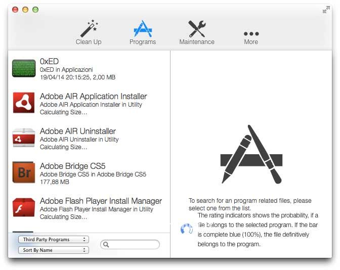 CleanApp 5 è la nuova versione (al momento una beta) di un software per OS X che consente di disinstallare le varie applicazioni permettendo di recuperare spazio. Il programma esamina le applicazioni man mano che queste sono installate e, quando si decide di eliminarle, cancella non solo l’applicazione principale ma anche file temporanei, file di log, preferenze e altri elementi generati che la semplice disinstallazione “manuale” (quella con la quale l’utente si limita a buttare nel cestino il programma), non consente di fare.