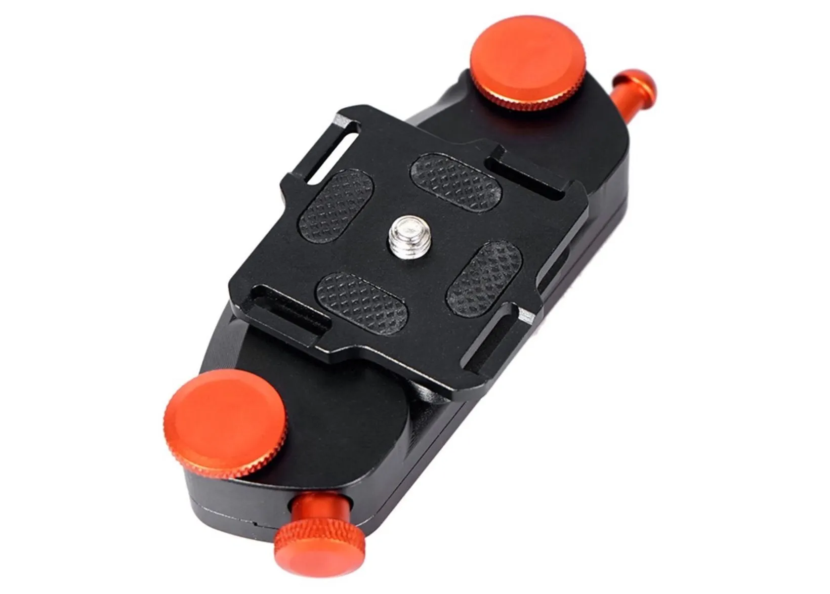 E’ tutto in metallo, solido e robusto e si può bloccare alla cintura dei pantaloni, allo spallaccio dello zaino o a una tracolla. Da quel momento crea un sistema di aggancio-sgancio rapido della fotocamera e può funzionare anche con un action camera, per creare così un punto di vista tutto nuovo durante le riprese a mano libera.