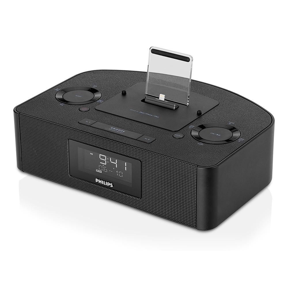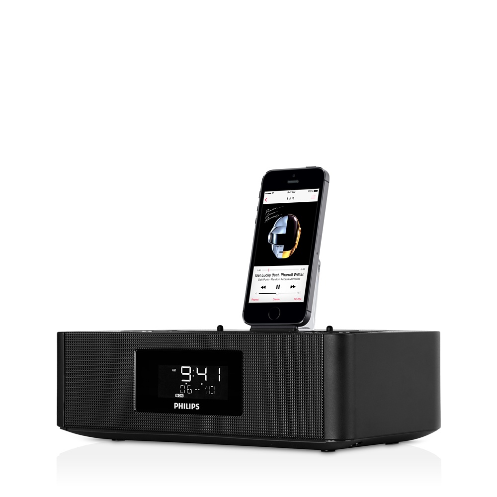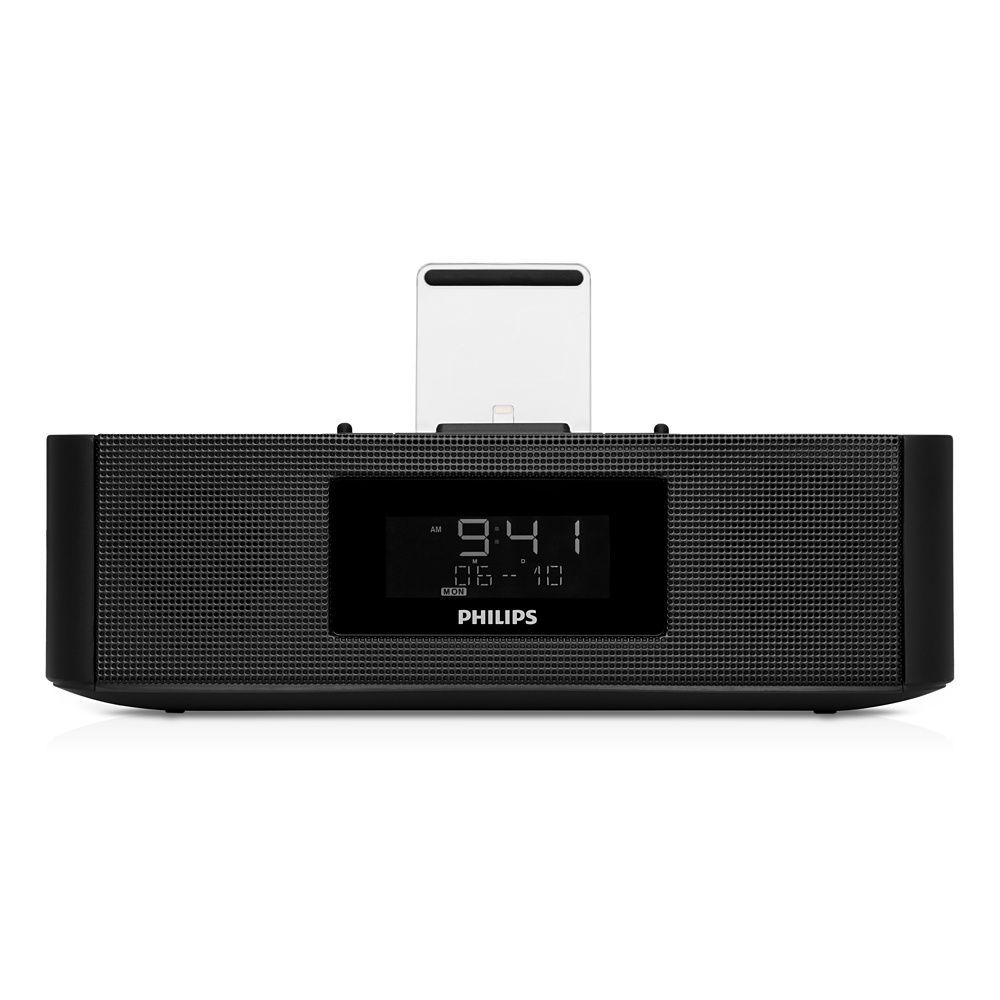 Phlips promette una qualità audio elevata e potente (4X4 RMS) e la possibilità di collegare i dispositivi anche con la loro custodia, grazie al connettore Lightning caricato a molla. Da segnalare anche la possibilità di caricare anche un secondo dispositivo usando la porta USB aggiuntiva. Tra le altre funzioni: batteria interna per non perdere traccia dell’ora e riprodurre l’allarme anche in caso di mancanza di corrente, sincronizzazione automatica con l’ora del dispositivo, connettore jack per dispositivi privi di porta Lightning, doppio allarme con attivazione differenziata a seconda dei giorni, tuner radio con sintonia digitale.