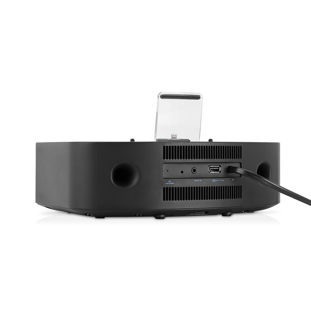 Il Clock Dock è un tre in uno con connettore Lightning: dock per ricaricare e riprodurre musica da iPhone, iPad e iPod, una radio (anche se la descrizione di Apple non menziona questa funzione; qui informazioni complete; qui il manuale in Italiano) e una sveglia. In questa veste può stare indifferentemente in un salotto, dove spiccherà per il design e ci aiuterà a non perdere di vista l’ora di un appuntamento, e in una camera da letto, per aiutarci ad alzarci. Questo compito sarà svolto riproducendo musica sia dal dispositivo che dall’etere (20 stazioni memorizzabili).