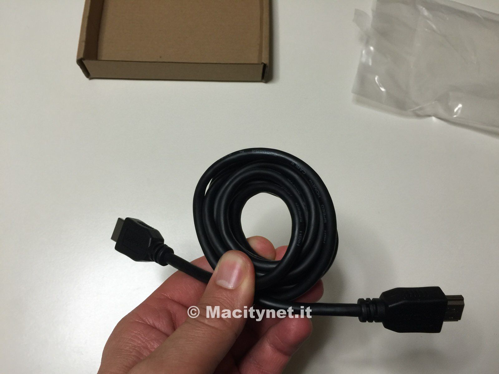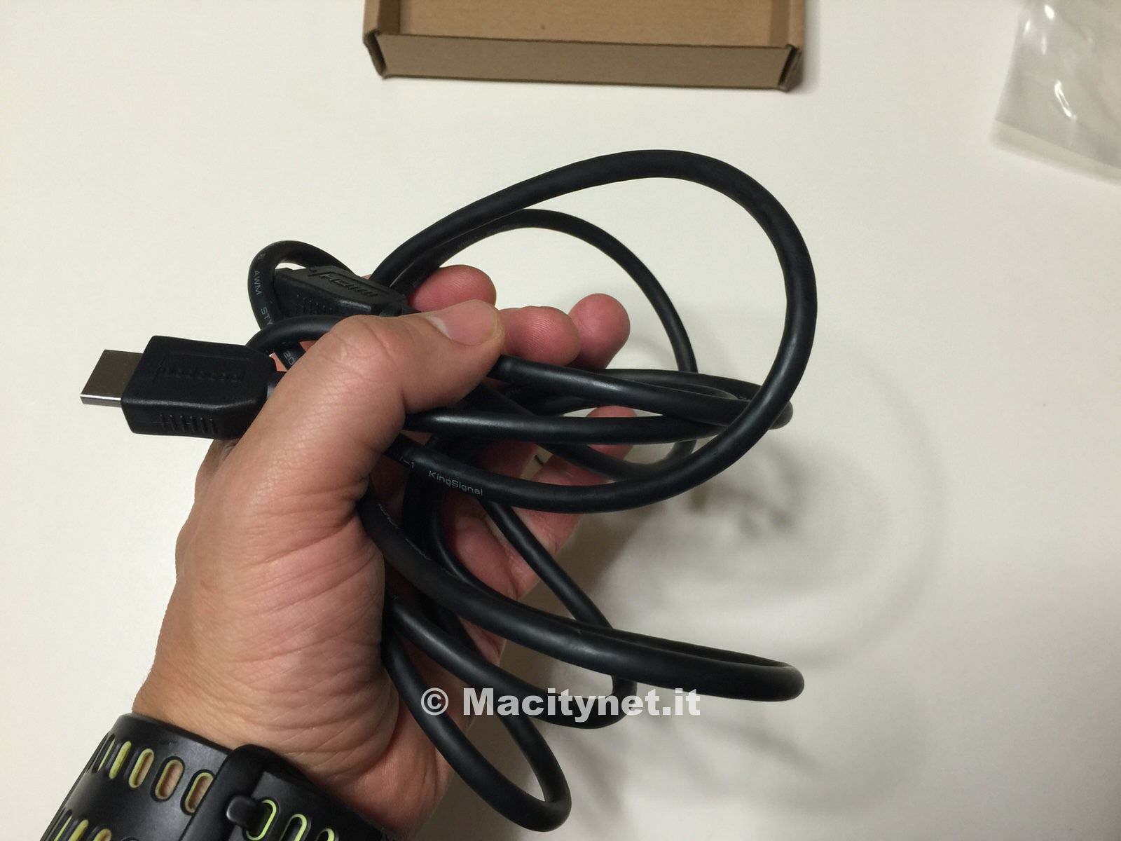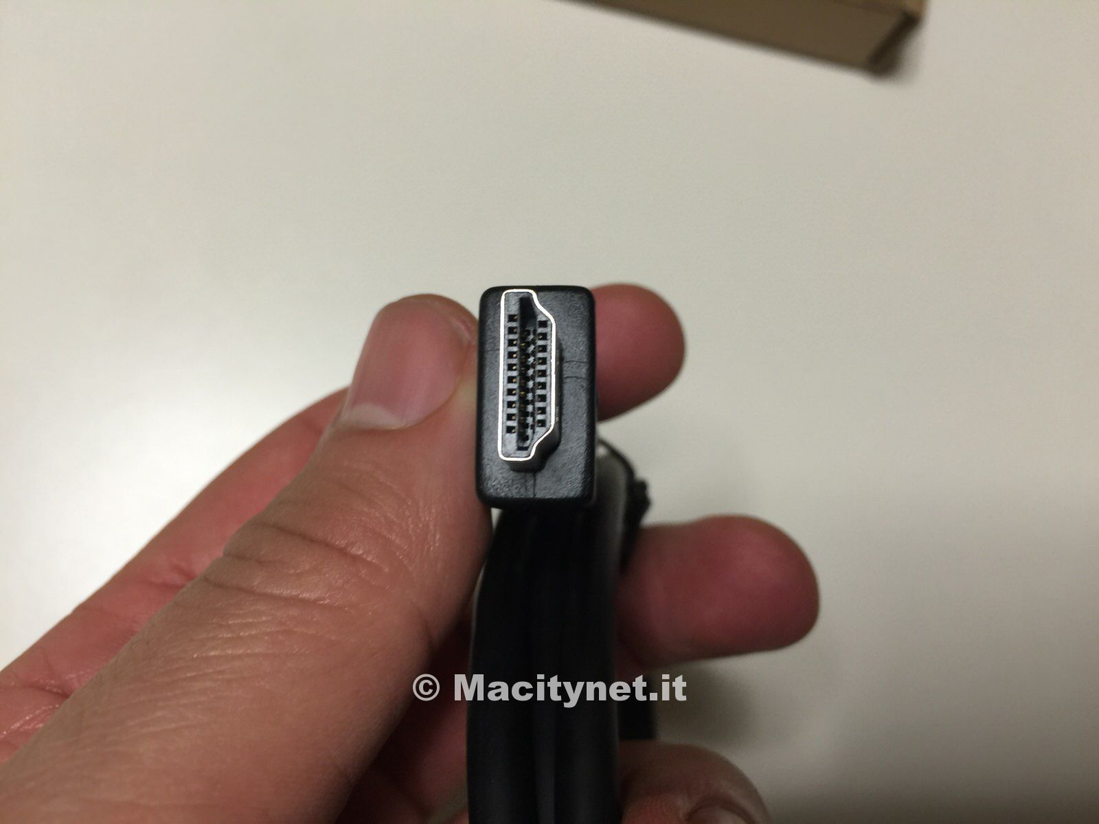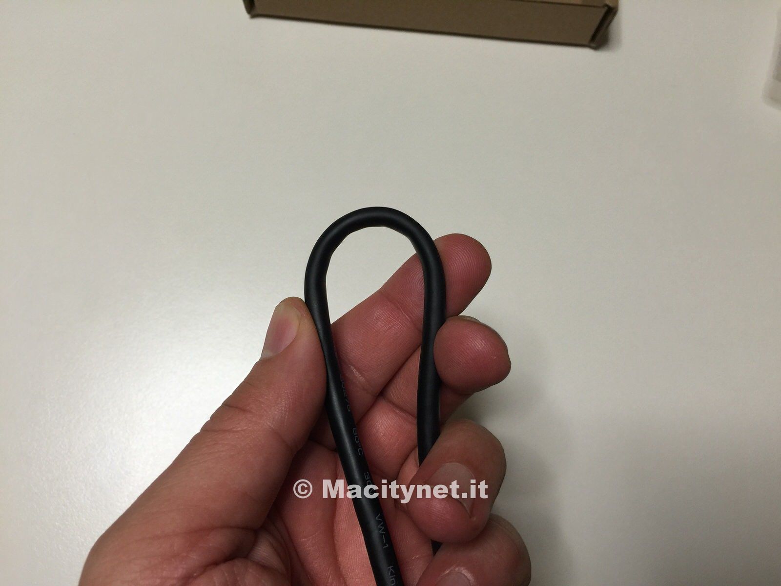 Il cavo che abbiamo avuto modo di prendere in esame appare ben costruito usando materiali di ottima qualità. La schermatura che avvolge il cavo principale è protetta da un rivestimento in PVC nero morbido e flessibile e privo di qualunque odore. Abbiamo provato a torcere e avvolgere il cavo e non abbiamo notato alcun segno visibile sul rivestimento; alla fine il cavo è sempre tornato nella posizione originale. Nello stesso tempo l’abbiamo avvolto facilmente in maniera da ridurne la lunghezza. La connessione, anche con il nostro MacBook Pro Retina, è precisa e fluida. Abbiamo fatto alcuni test con lettori Blu-ray, Home Cinema, il menzionato Mac, un lettore Blu-ray senza avere il minimo problema di compatibilità.