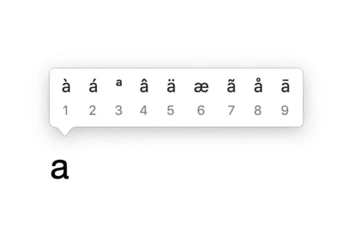 Quando inseriamo una lettera che necessita di un accento o di un altro segno diacritico, basta tenere premuto il tasto della lettera sulla tastiera per visualizzare un menu degli accenti. Se il tasto non ha alcun segno diacritico possibile, il menu non viene mostrato.