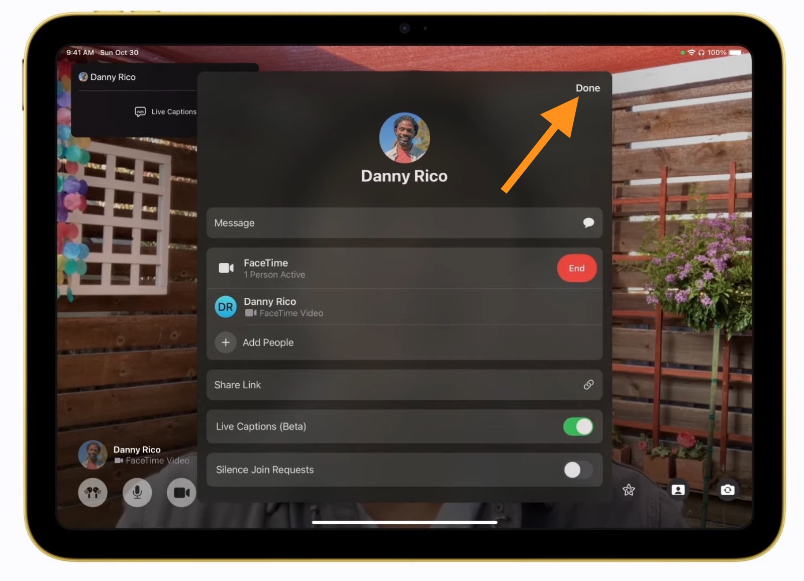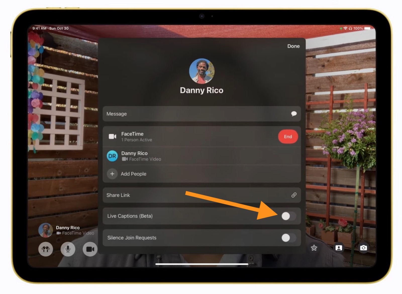 Per attivare rapidamente le Trascrizioni live su FaceTime è sufficiente cliccare sull’icona (i) in alto a destra durante una chiamata, quindi accendere l’interruttore Trascrizioni live (beta) e poi cliccare su Fine.
