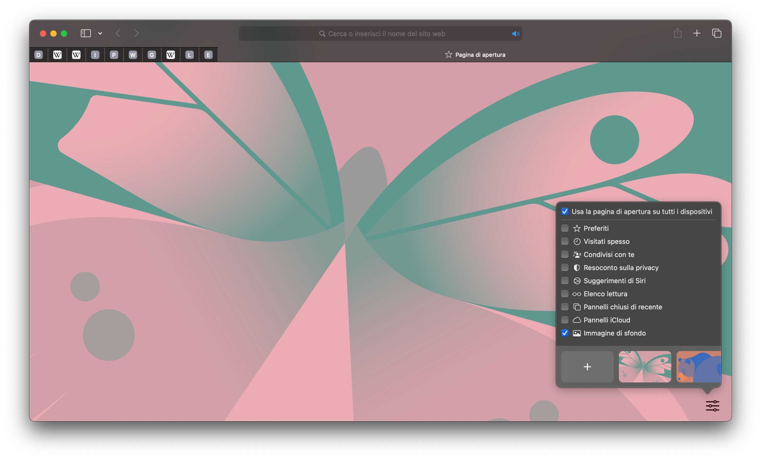 Da questo momento in poi Safari mostrerà l’immagine di sfondo selezionata quando si apre una nuova finestra, un nuovo pannello ma anche una nuova finestra privata.