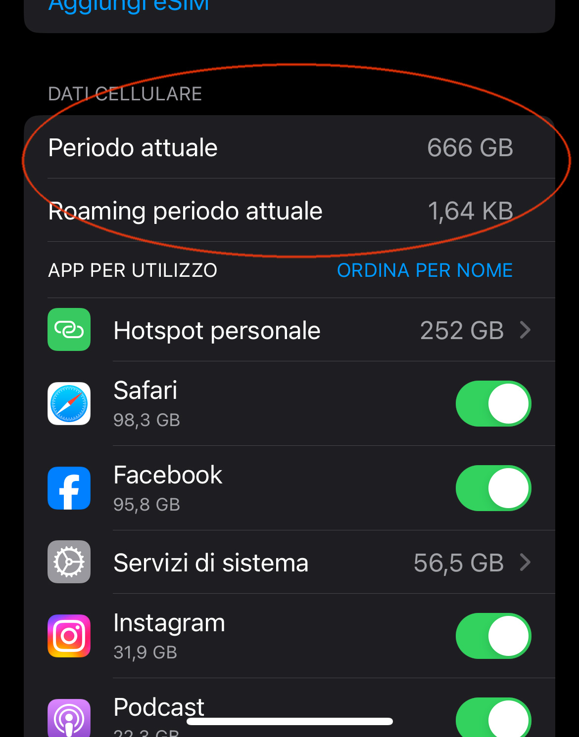È possibile visualizzare le statistiche relative all’uso dei dati per un’app relativamente al periodo attuale oppure visualizzare tali statistiche per le app che usano i dati in roaming. Per reimpostare queste statistiche, basta andare su Impostazioni > Cellulare o Impostazioni > Dati cellulare e qui toccare la voce “Azzera statistiche” (ultima voce, in fondo nella videata).