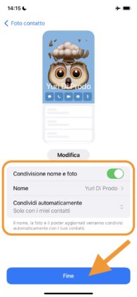 Nell’ultima schermata potrete poi scegliere se condividere automaticamente il nuovo Poster di contatto con tutta la rubrica, o soltanto con utenti selezionati manualmente.