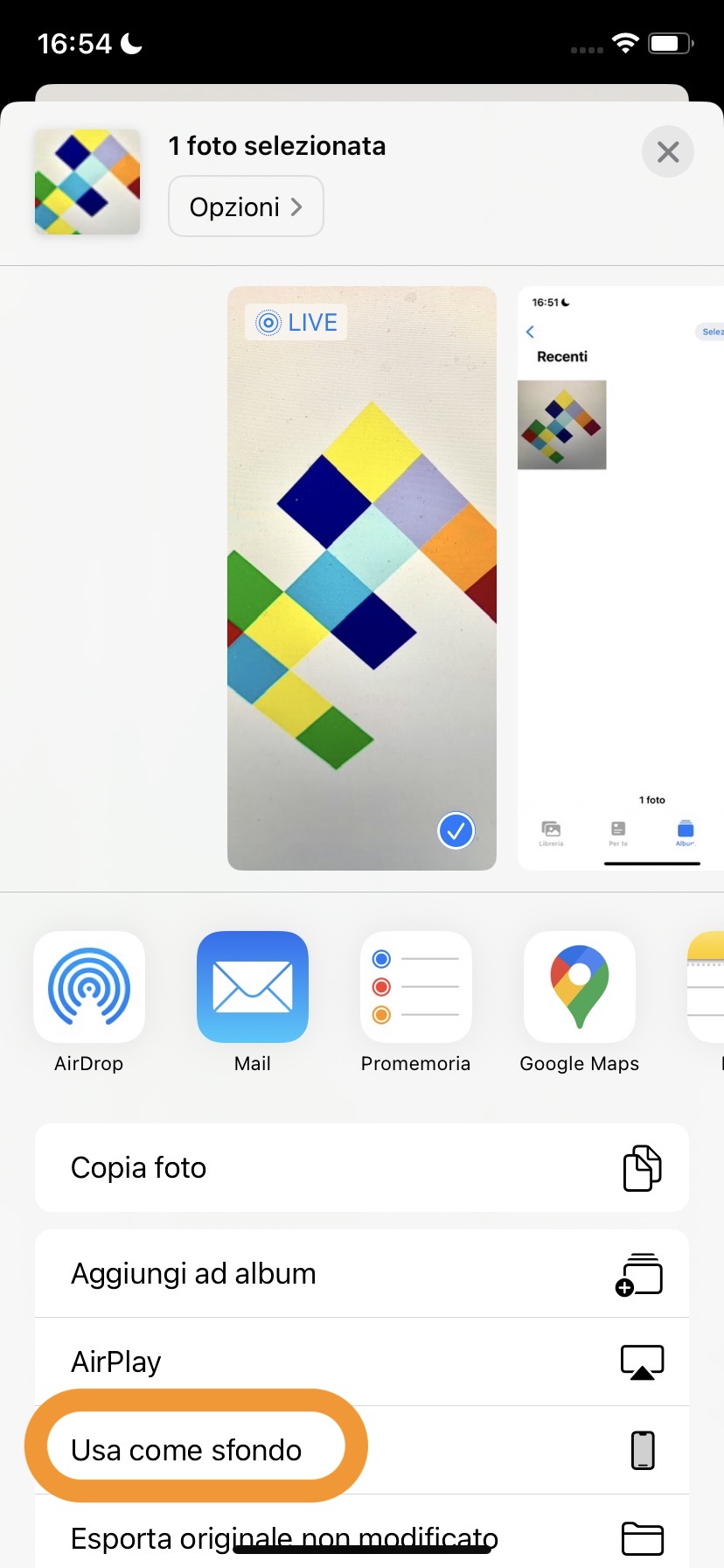 Ecco fatto. Ora avete creato lo sfondo per il vostro telefono. Eventualmente potete salvarne una copia in qualche servizio cloud in modo da averlo già pronto per future installazioni, e ripristinare l’immagine per recuperare la foto originale in pochi semplici click, ovvero: