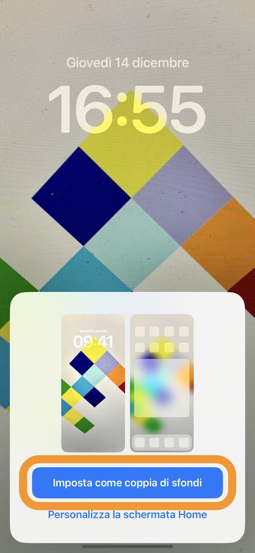 - Cliccate su Imposta come coppia di sfondi per applicarlo sia nella schermata di Blocco che sulla Home