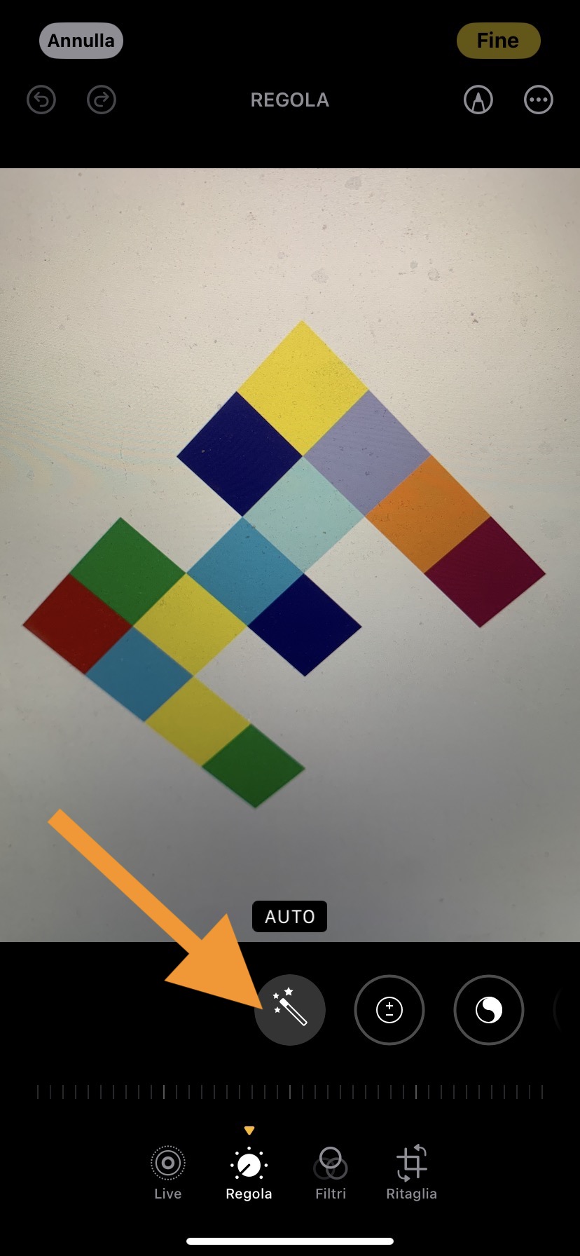 - Cliccate su AUTO (la bacchetta magica) per lasciare che gli algoritmi migliorino la qualità dell’immagine; in alternativa regolate manualmente voi Esposizione, Contrasto, Saturazione e il resto