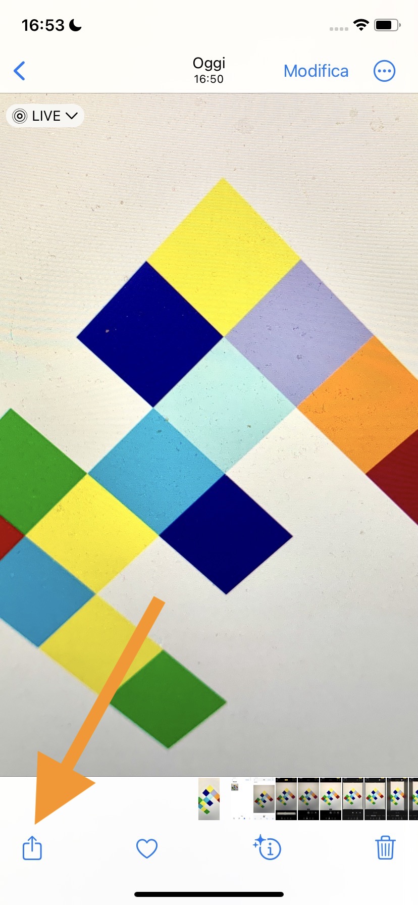 - Cliccate sul pulsante Condividi in basso a sinistra (il quadrato con la freccia che punta verso l’alto)