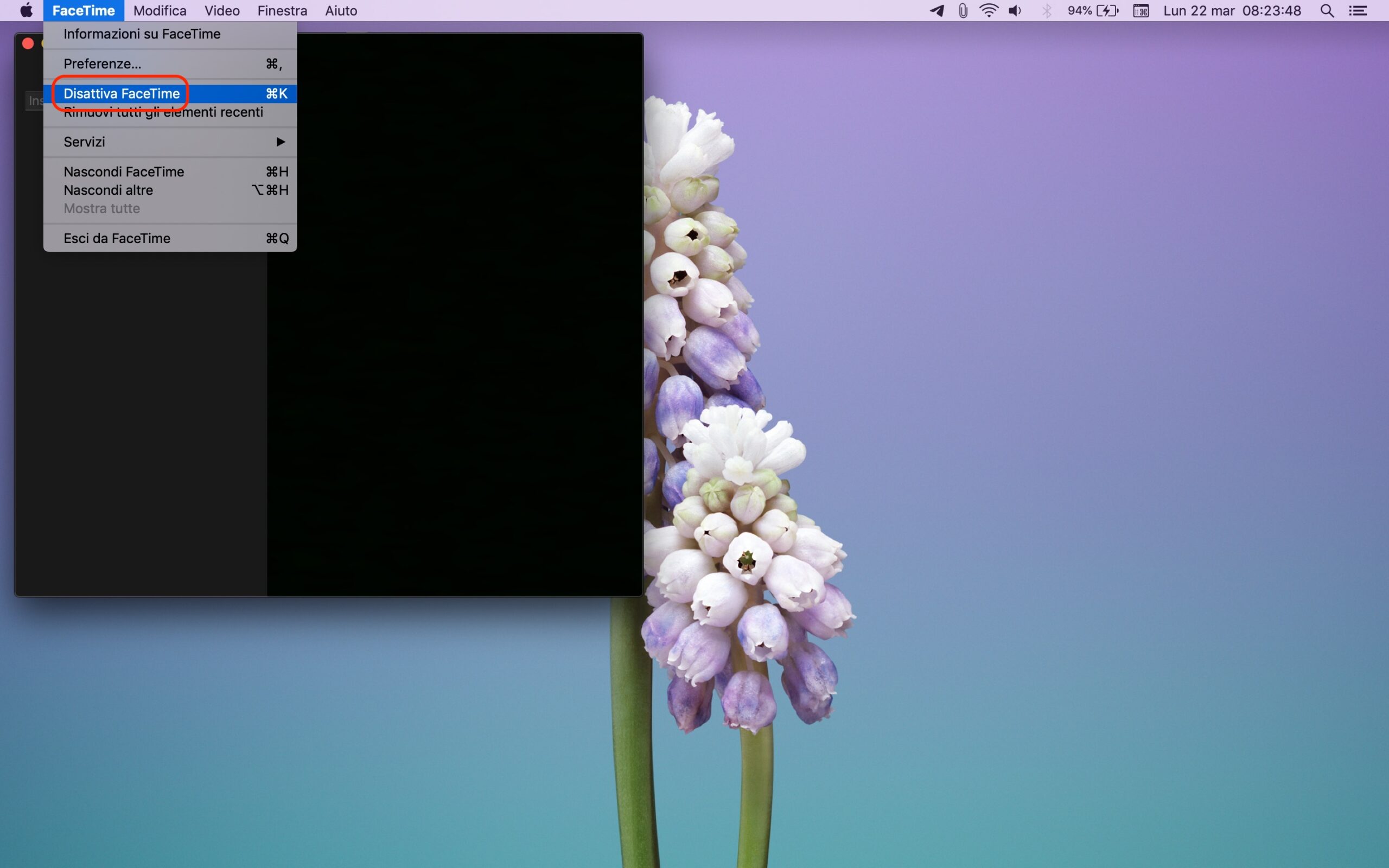 • Selezionate l’opzione “Disattiva FaceTime” (⌘K)