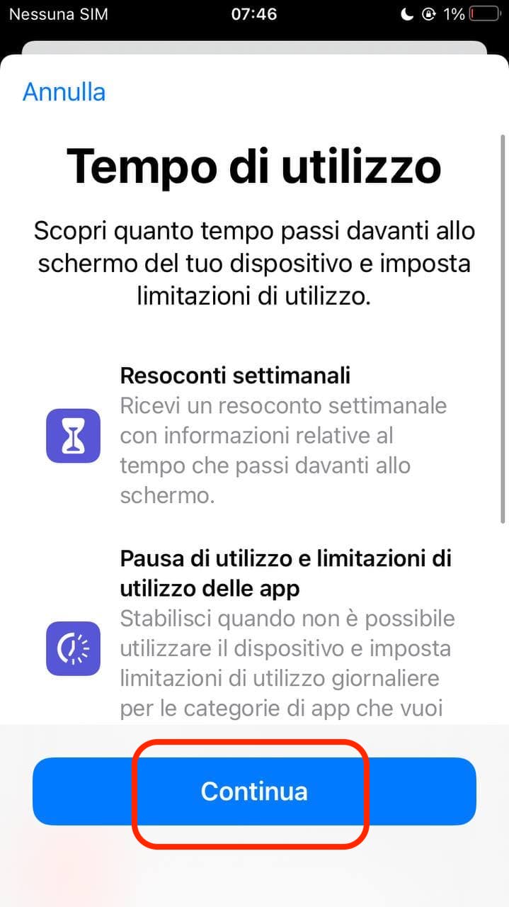 Recatevi quindi in Impostazioni > Tempo di utilizzo e, se non lo avete ancora attivato, fatelo adesso. Acceso l’interruttore accederete ad una pagina carica di opzioni che vi permetteranno di configurare l’uso di iPhone in base alle vostre necessità.
