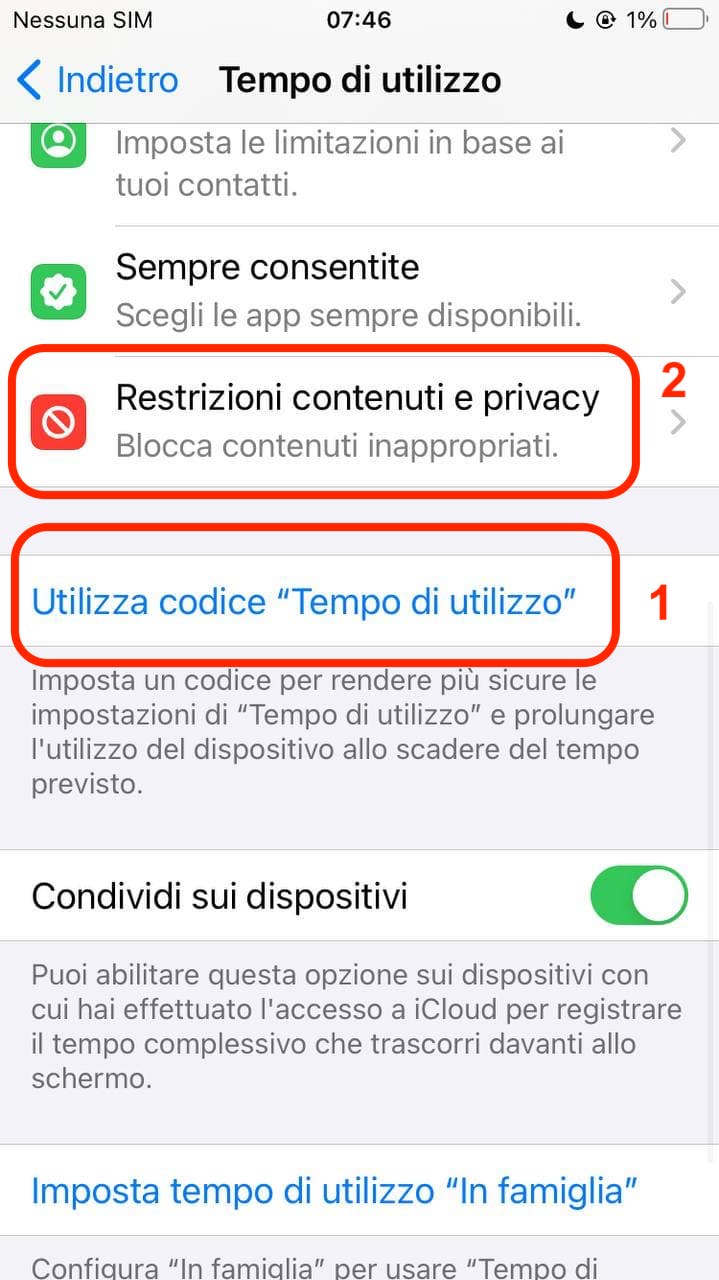 Questo, come da titolo, vale soltanto per la limitazione degli acquisti in-app su iPhone e iPad. La funzione “Tempo di utilizzo” include una miriade di opzioni per poter personalizzare minuziosamente tutto ciò che riguarda l’uso del dispositivo. E’ presente perfino una funzione denominata “Imposta tempo di utilizzo In famiglia” grazie alla quale un genitore potrà configurare “Tempo di utilizzo” e tutto ciò che ne consegue sui dispositivi dei propri figli.