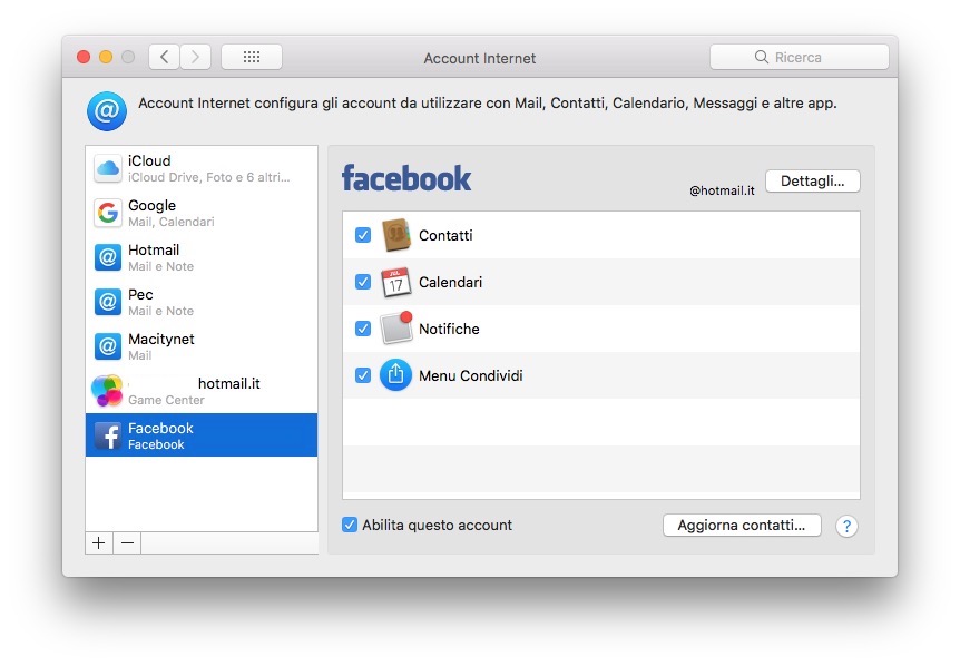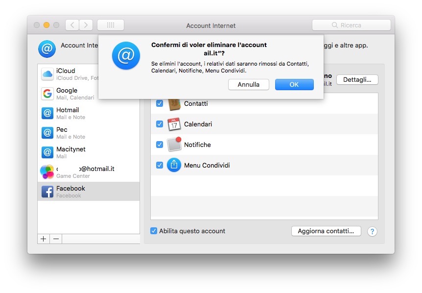Anzitutto, collegare il proprio profilo Facebook a macOS significa scaricare gli amici di Facebook nell’app Contatti del mac, oltre a scaricare gli eventi Facebook nel calendario del Mac, o poter pubblicare velocemente aggiornamenti di stato, foto e video su Facebook. Per poter eliminare dati Facebook da macOs è sufficiente aprire il pannello Impostazioni e, da qui, raggiungere il tab Account Internet.