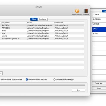 L’app si chiama arRsync e può davvero cambiarvi la vita. Questo perché oltre a poter gestire il backup di file e cartelle selezionati dall’utente, si possono creare più preset in modo da gestire separatamente diversi tipi di backup.