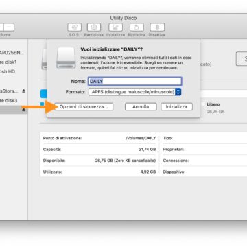 Massimizzate poi la protezione cliccando infine su Opzioni di sicurezza… in fase di formattazione spostando il selettore tutto a destra su Più sicuro.