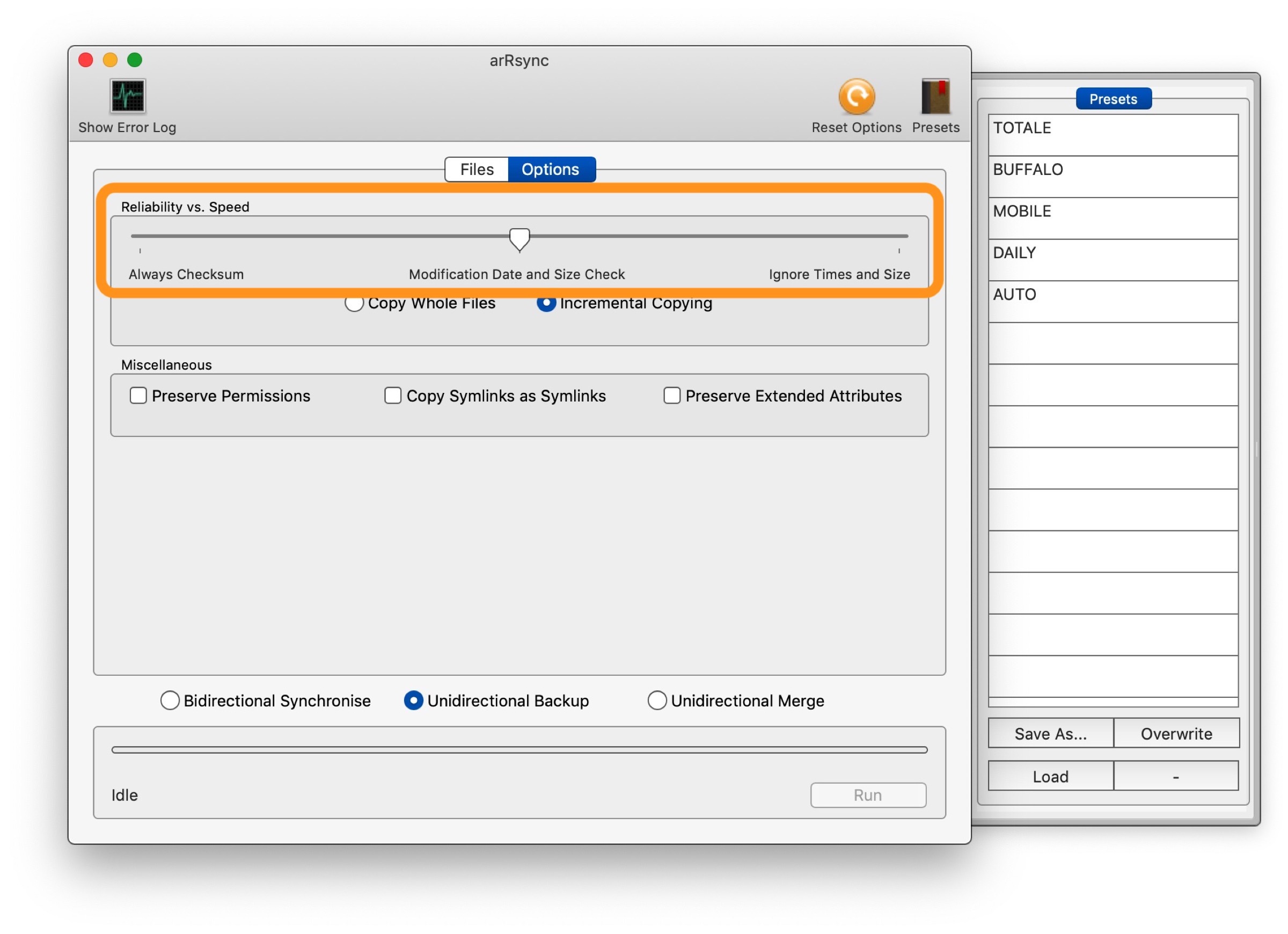 Attraverso il selettore in Reliability vs. Speed scegliete sostanzialmente come deve funzionare il backup:
