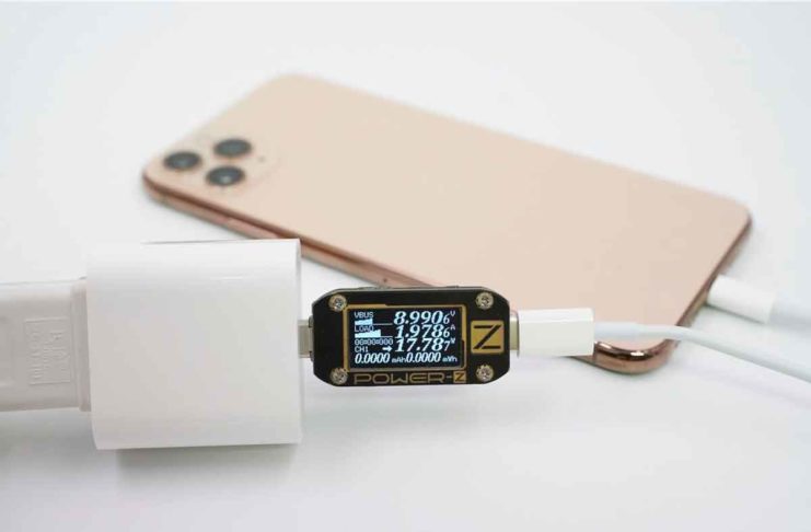 Il sito ChargerLAB ha testato sia l’alimentatore di Apple, sia altri di terze parti in abbinamento al”iPhone 11 Pro Max. L’accessorio di serie funziona come previsto: è stata misurata una potenza di 17,78 W (tensione di 8,99 Volt e intensità di 1,97 Ampere).