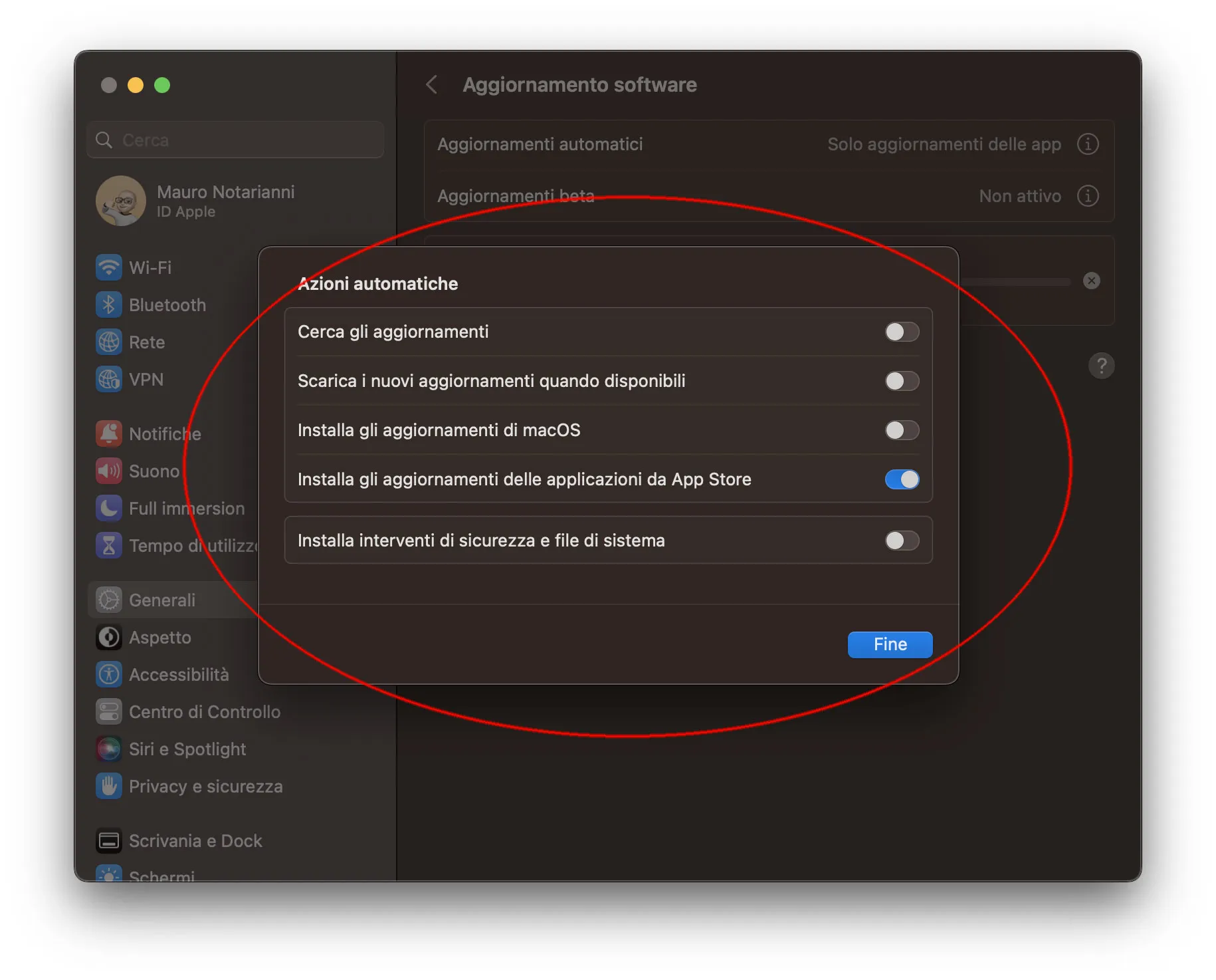 - Per fare in modo che il Mac installi automaticamente gli aggiornamenti di macOS, attivate l’opzione “Installa aggiornamenti macOS”.