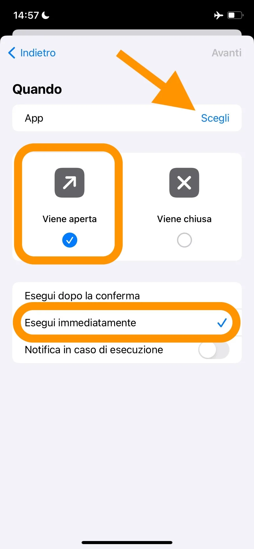 - (se attivo) spegnete l’interruttore Notifica in caso di esecuzione