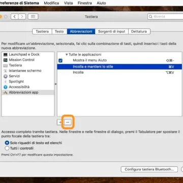 Nessun problema, c’è una soluzione anche a questo: selezionate una ad una le abbreviazioni appena create e cliccate sul pulsante – per cancellarle.