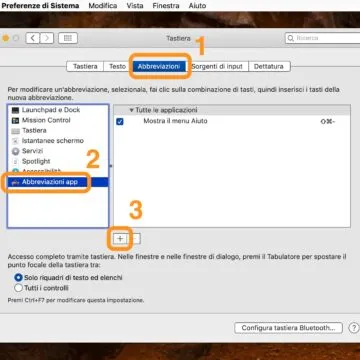 5. Cliccate sul pulsante + per aggiungere una nuova scorciatoia