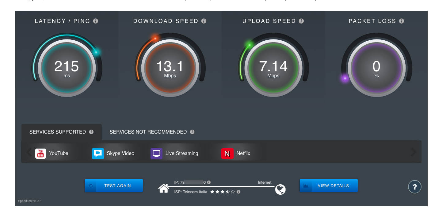 Per testare la velocità della propria connessione internet esistono numerosi test online di facile uso che, in pochi secondi, consentono di ottenere dettagli quali velocità in download e upload, misurando anche elementi quali ping, latenza, pacchetti persi e tempi di risposta (il numero in millisecondi che indica quanto impiega il nostro computer ad ottenere una risposta dal server).