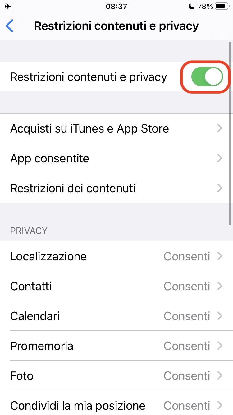 Chiaramente, al contrario, se volete tornare ad usare l’app App Store dovete spostare di nuovo su “Consenti” il selettore associato alle tre voci “Installazione app”, “Eliminazione app” e “Acquisti in-app”.