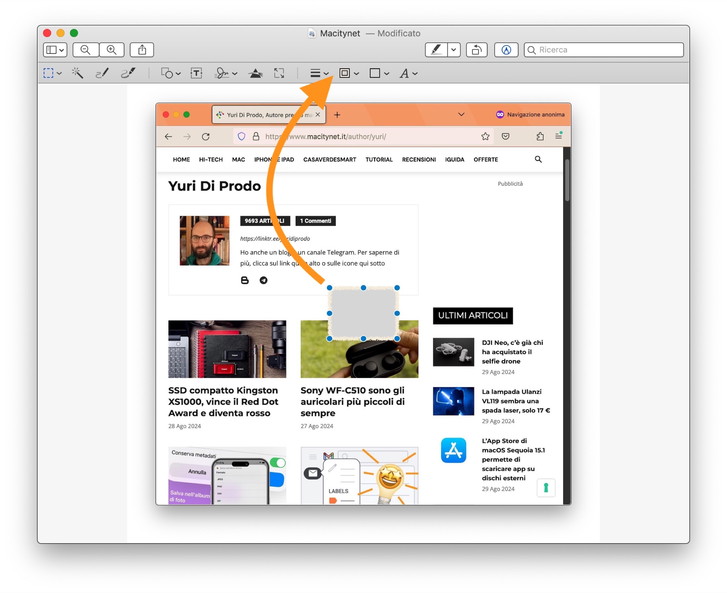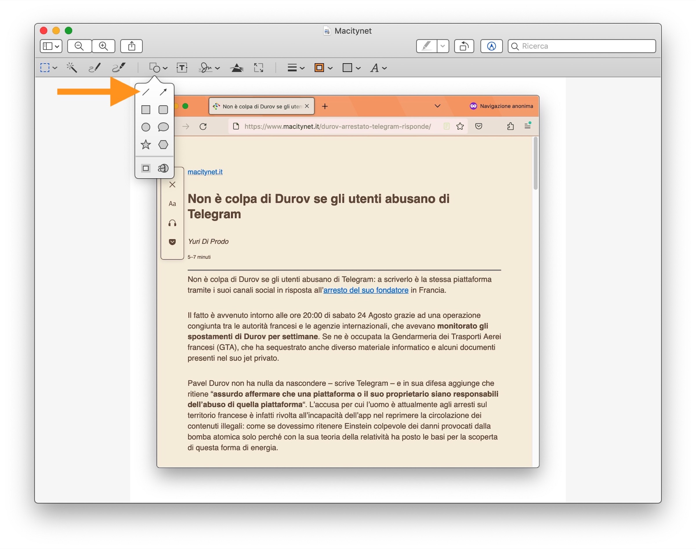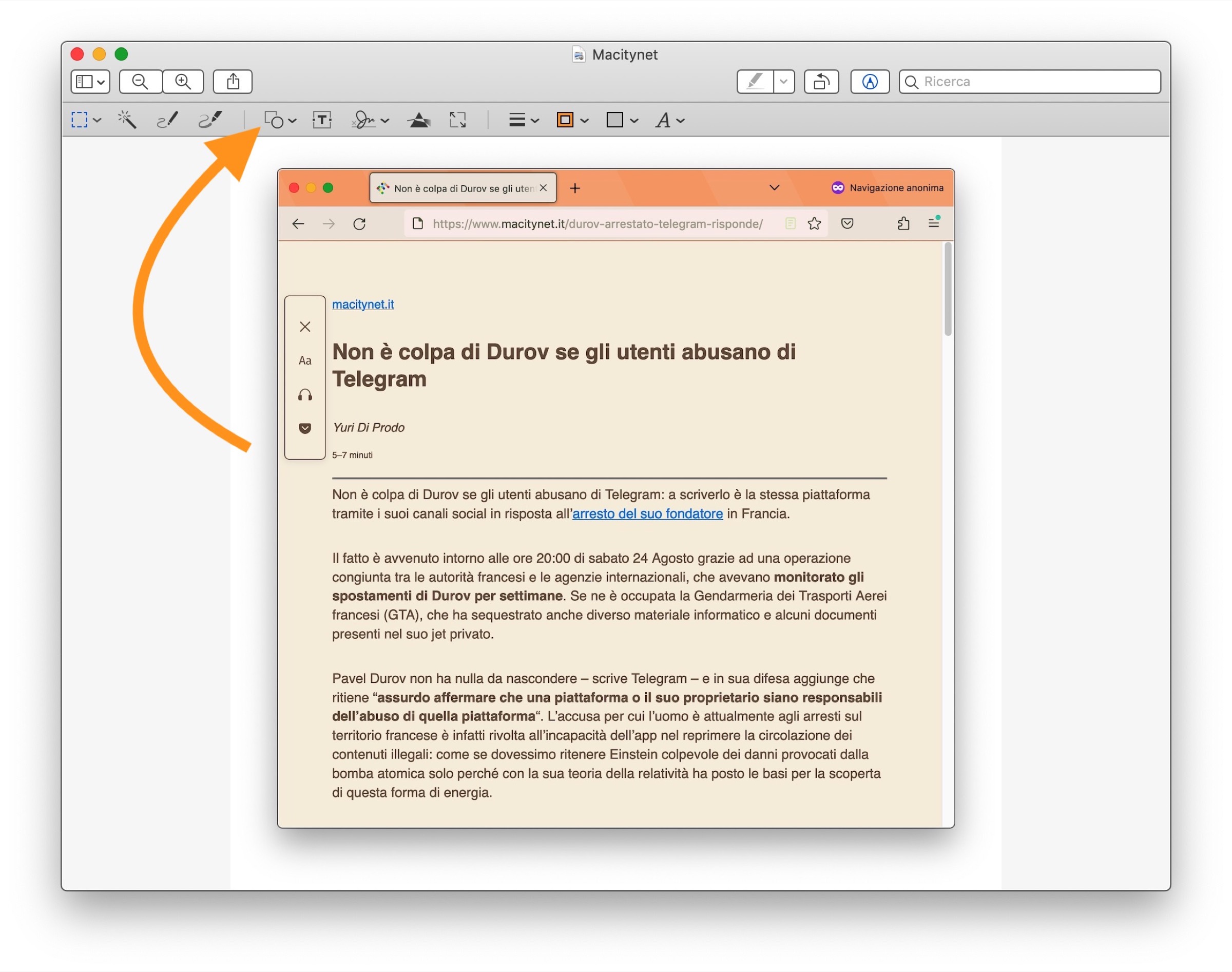 Eppure tutto quello di cui abbiamo bisogno c’è già: l’app Anteprima di Apple, anche se non ha una vera e propria funzione dedicata a questo scopo, mette a disposizioni alcuni strumenti che possono essere usati anche per oscurare i volti o quelle parti di testo che si desiderano nascondere da immagini e schermate che desideriamo condividere.
