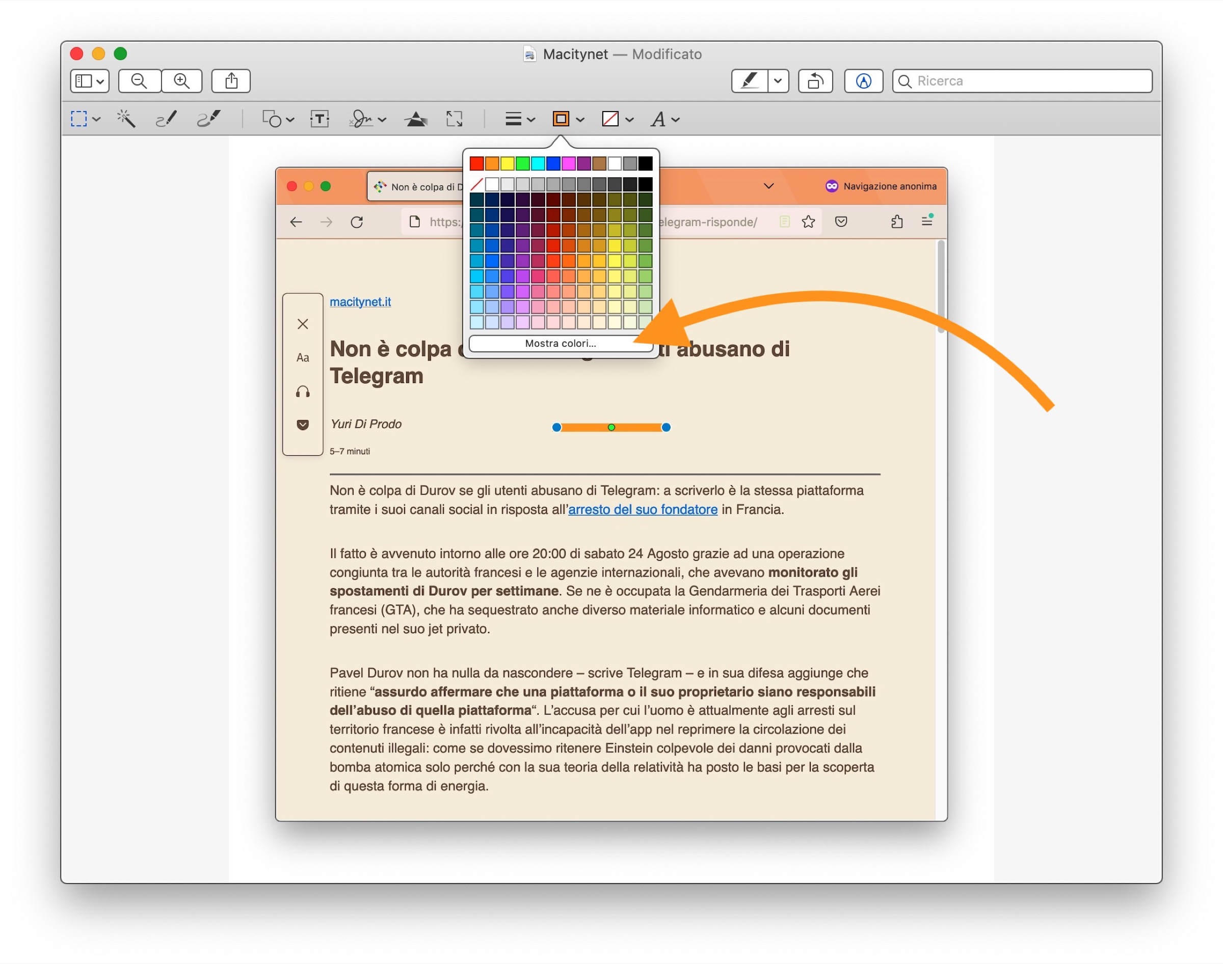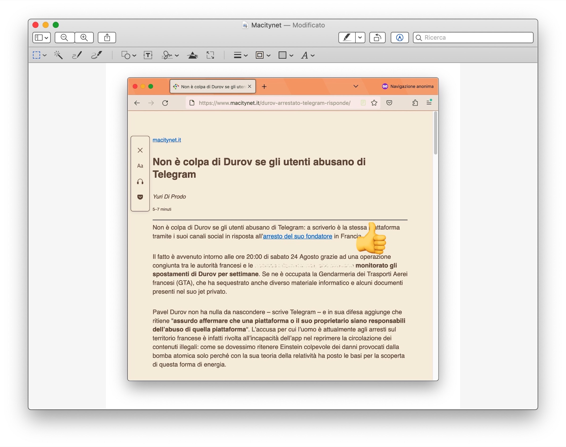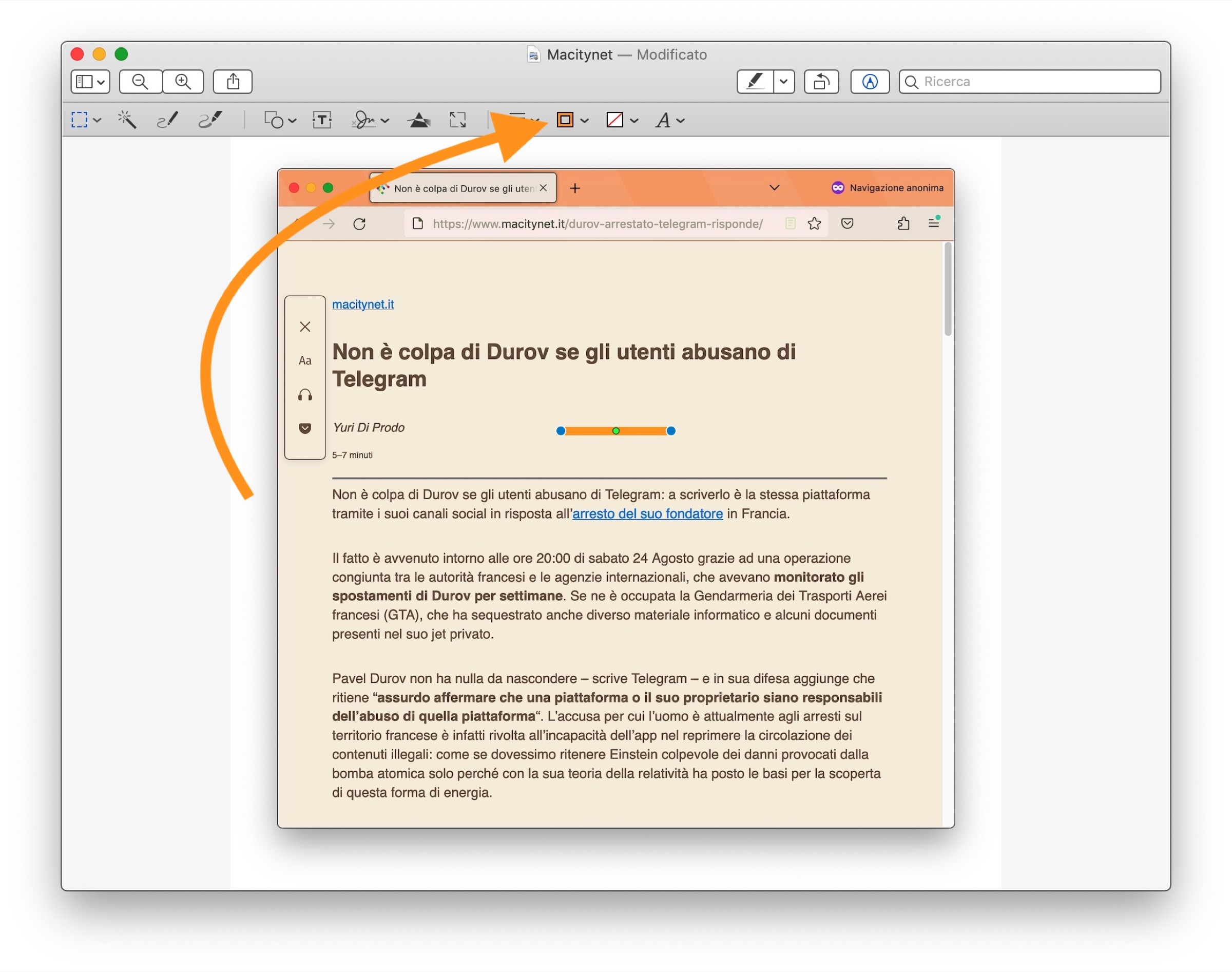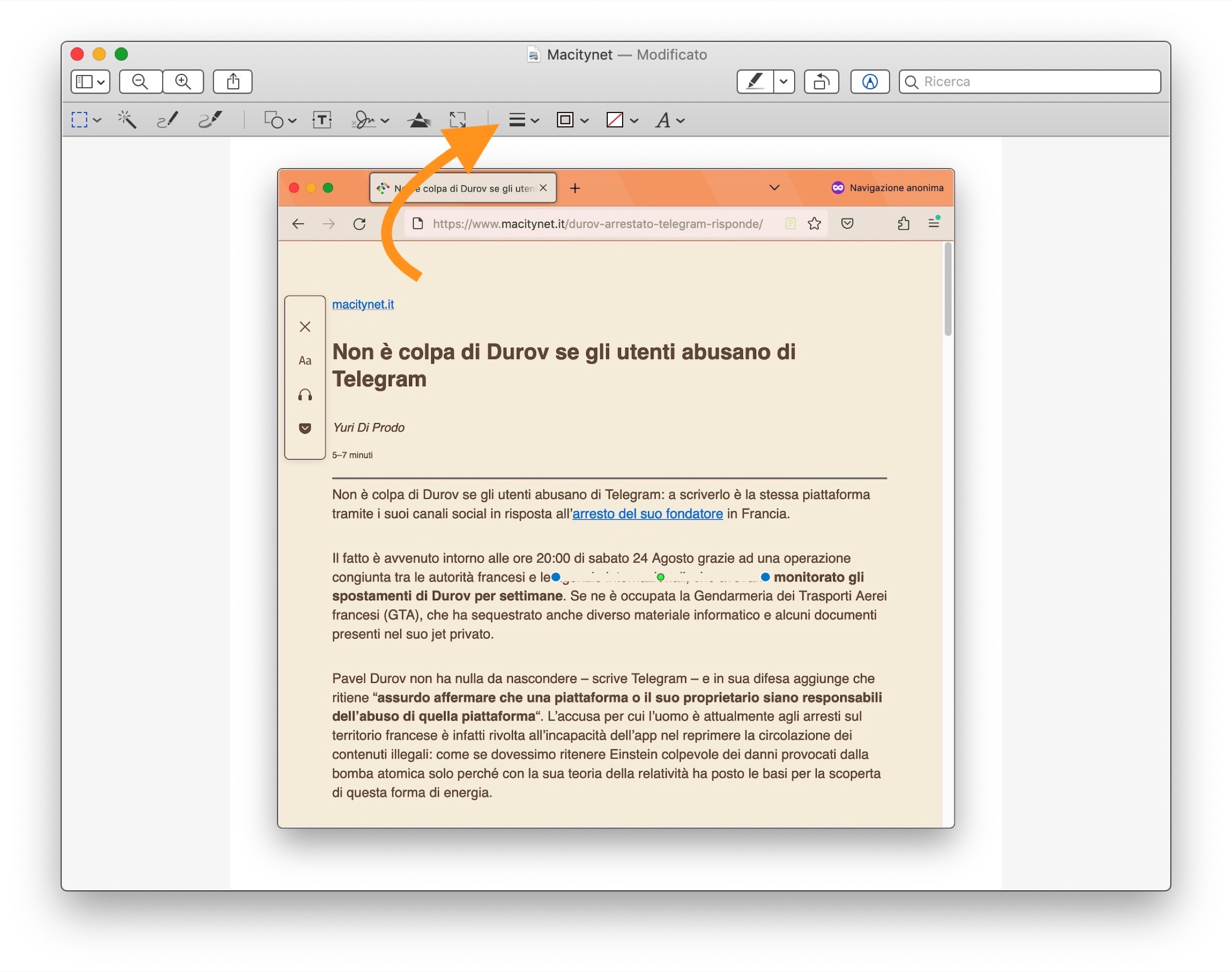 Eppure tutto quello di cui abbiamo bisogno c’è già: l’app Anteprima di Apple, anche se non ha una vera e propria funzione dedicata a questo scopo, mette a disposizioni alcuni strumenti che possono essere usati anche per oscurare i volti o quelle parti di testo che si desiderano nascondere da immagini e schermate che desideriamo condividere.