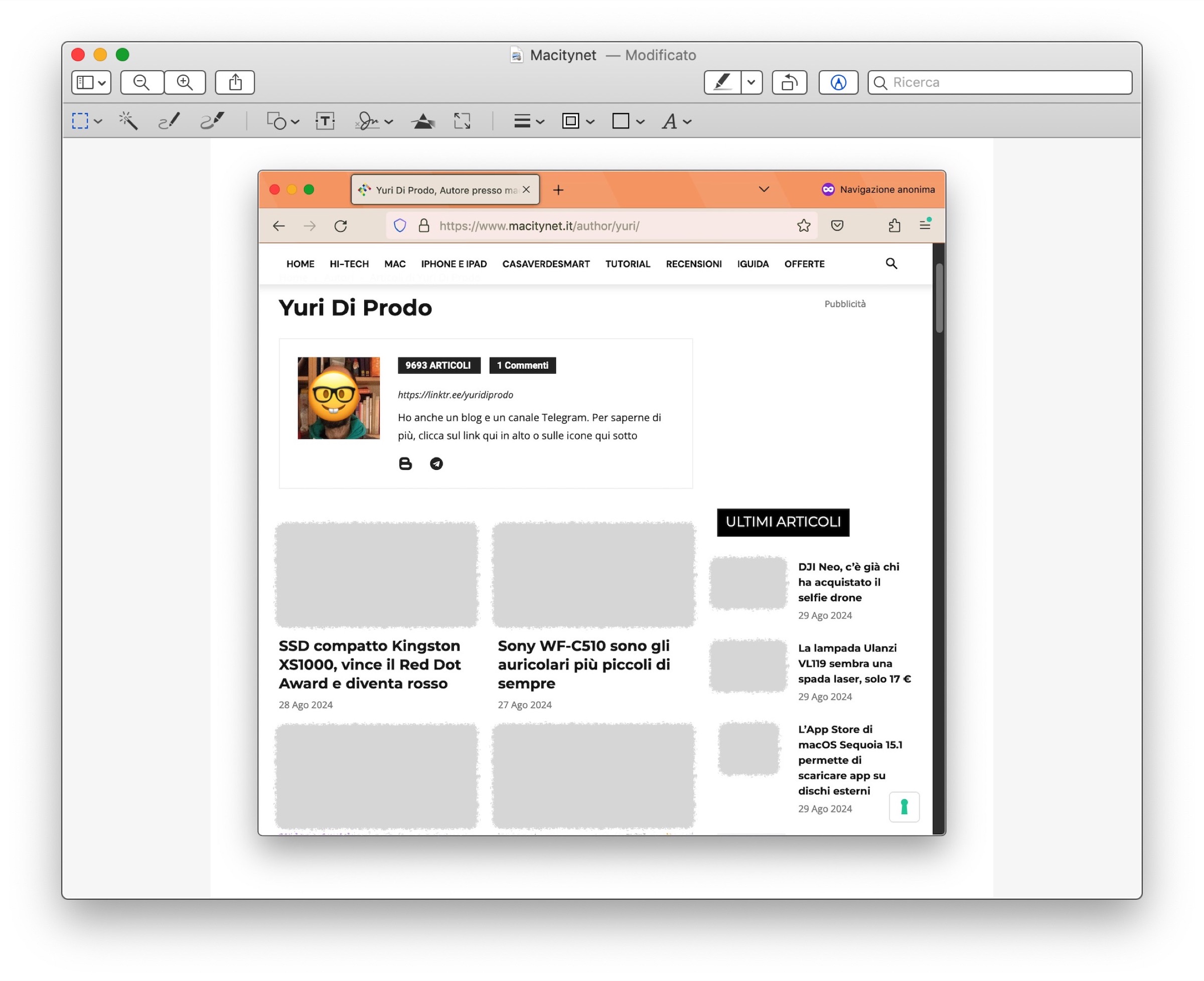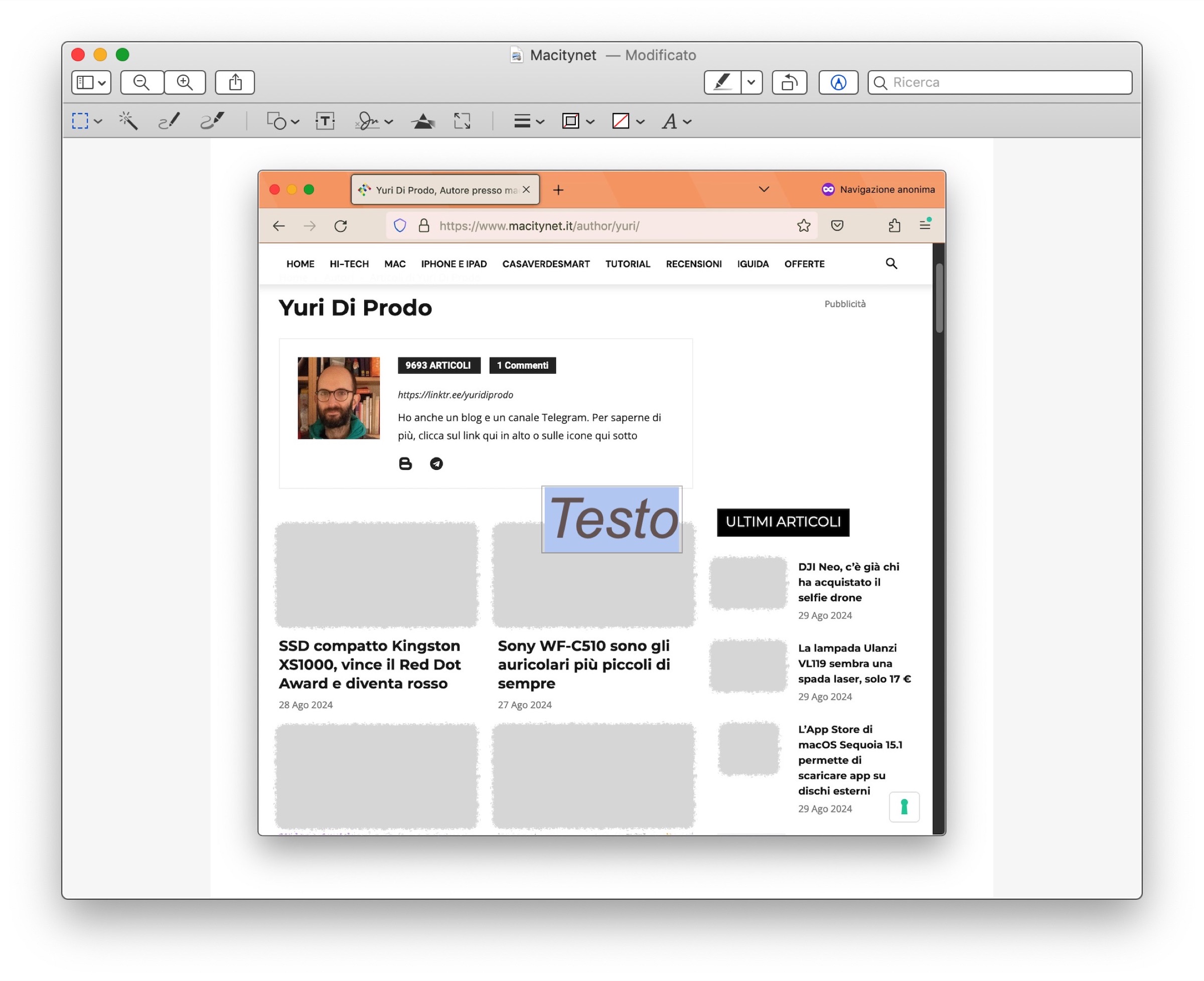 Se avete catturato una schermata e volete nascondere un indirizzo email, un numero di telefono, una via o un qualsiasi altro dato sensibile (a noi spesso capita quando dobbiamo allegare una o più immagini ad un tutorial), con Anteprima è possibile farlo in maniera elegante seguendo queste istruzioni: