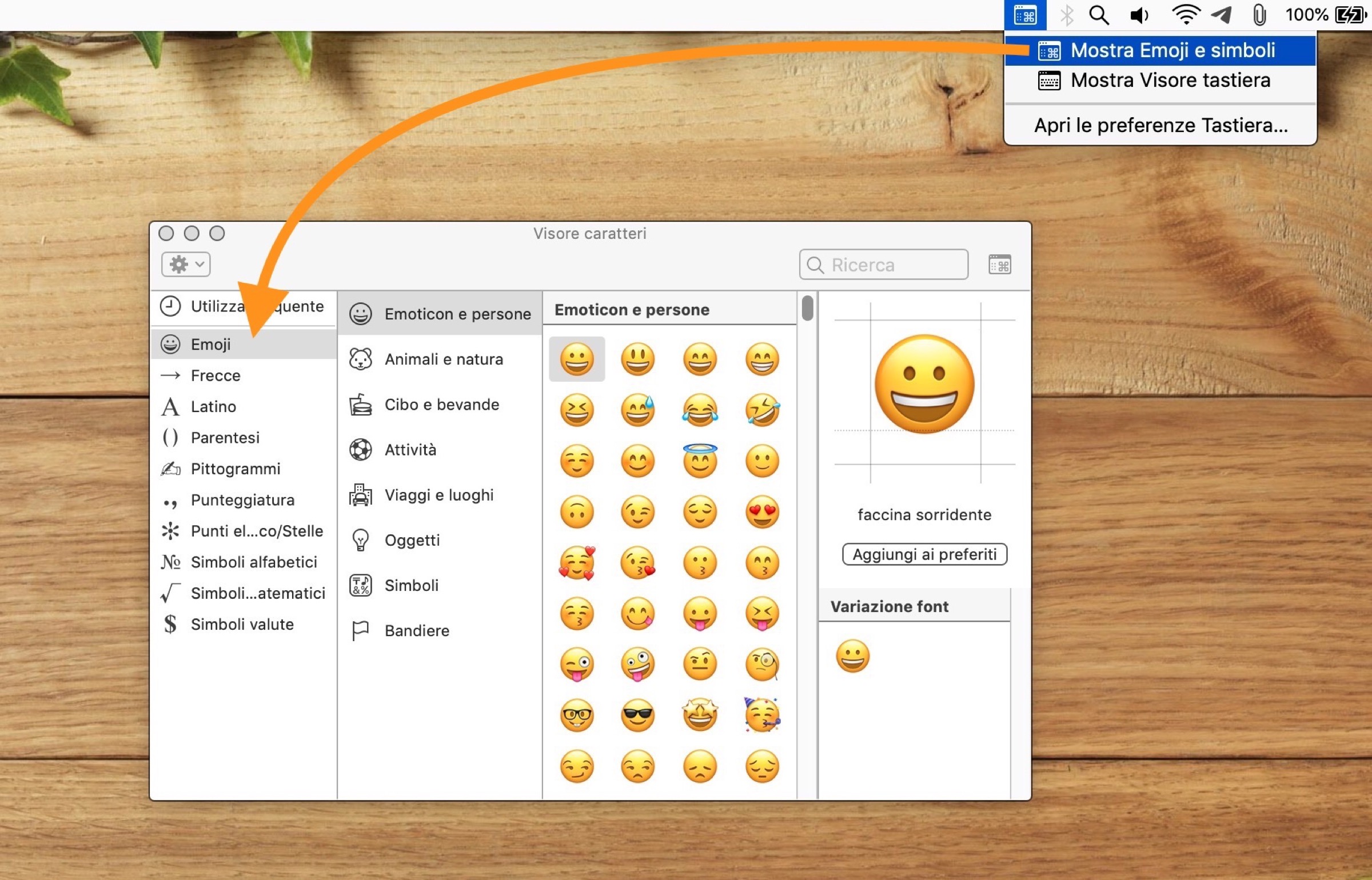- Evidenziate l’emoji per far sì che le modifiche vengano applicate al testo selezionato (in questo caso, la faccina);