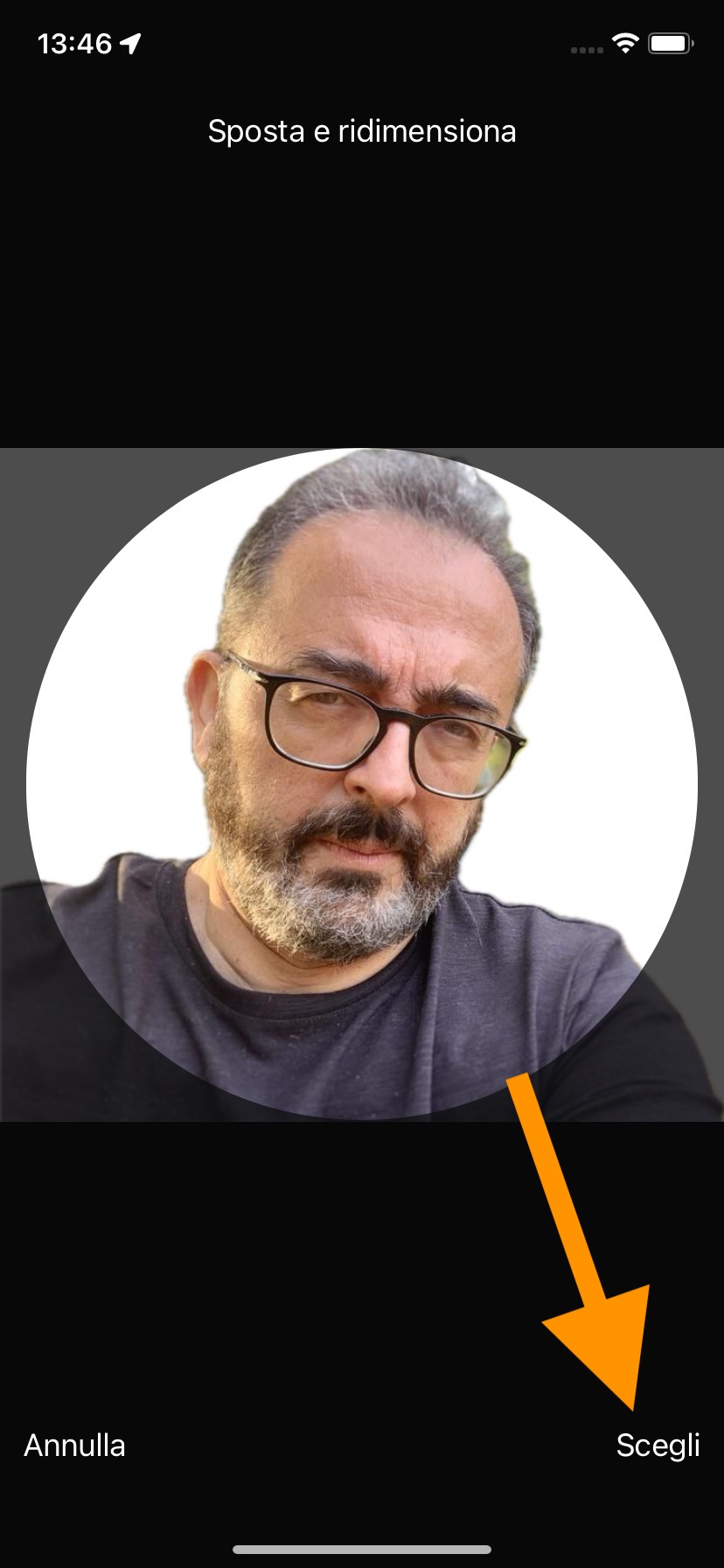 - Spostate e ridimensionate l’immagine per far sì che il volto compaia all’interno del cerchio di anteprima del contatto