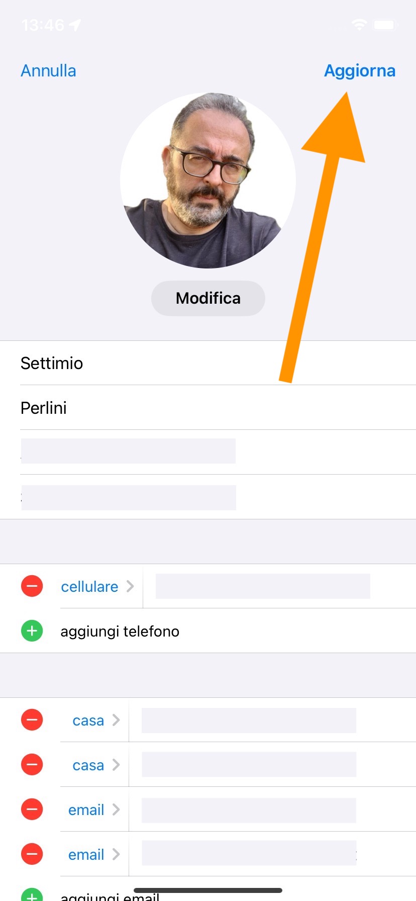 - Confermate la modifica cliccando sul tasto Aggiorna (in alto a destra)