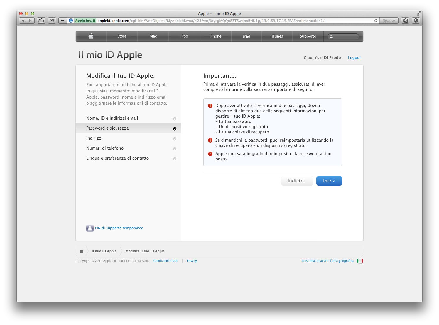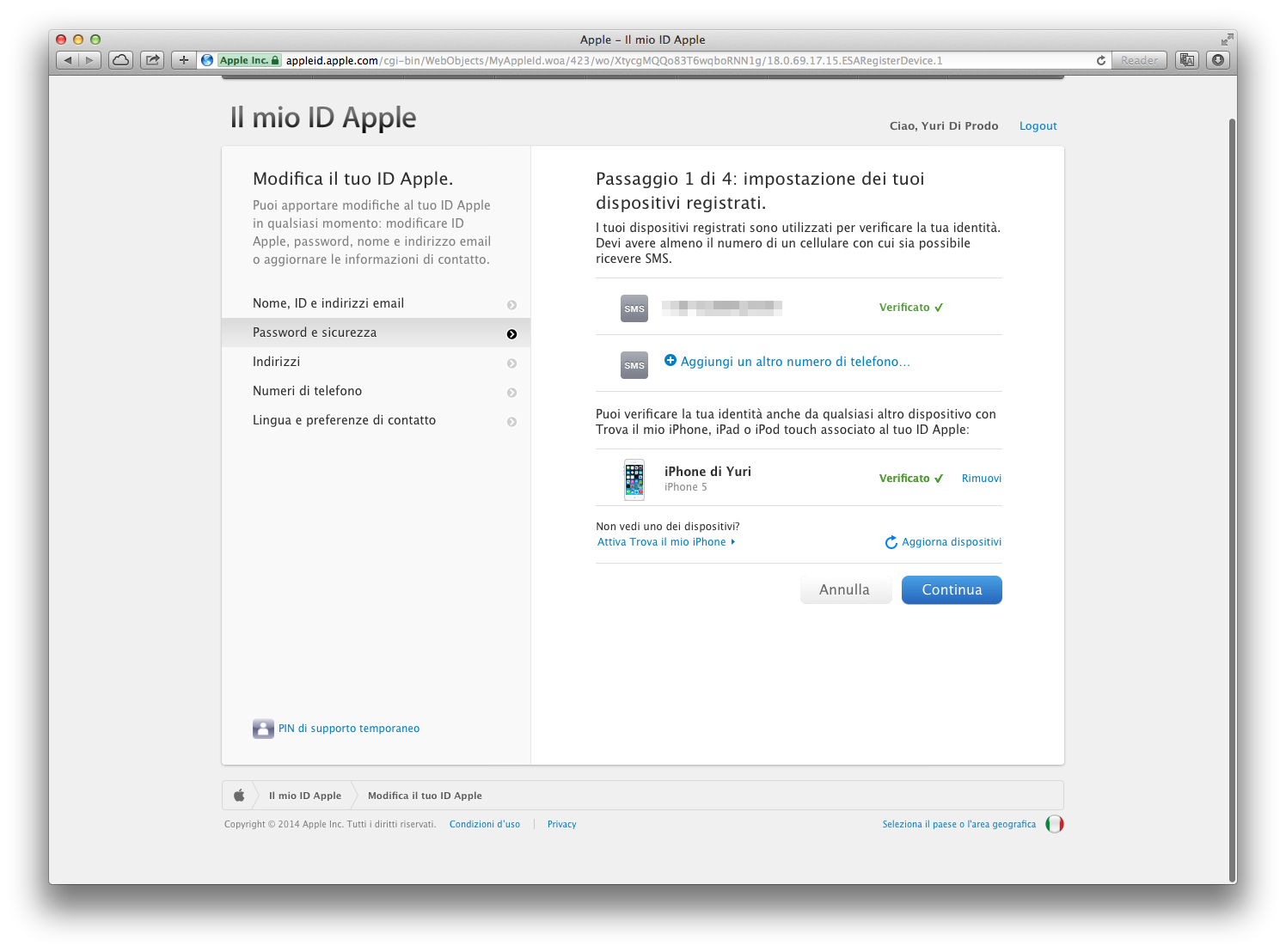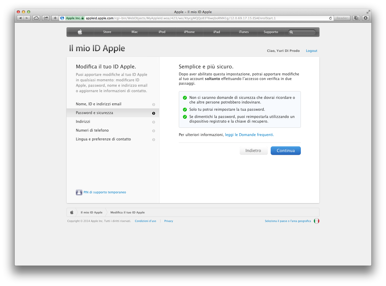 Per chi non l’avesse ancora attivata, mostriamo i vari passaggi da eseguire tramite computer partendo dal sito https://appleid.apple.com/it/ attraverso una galleria commentata.