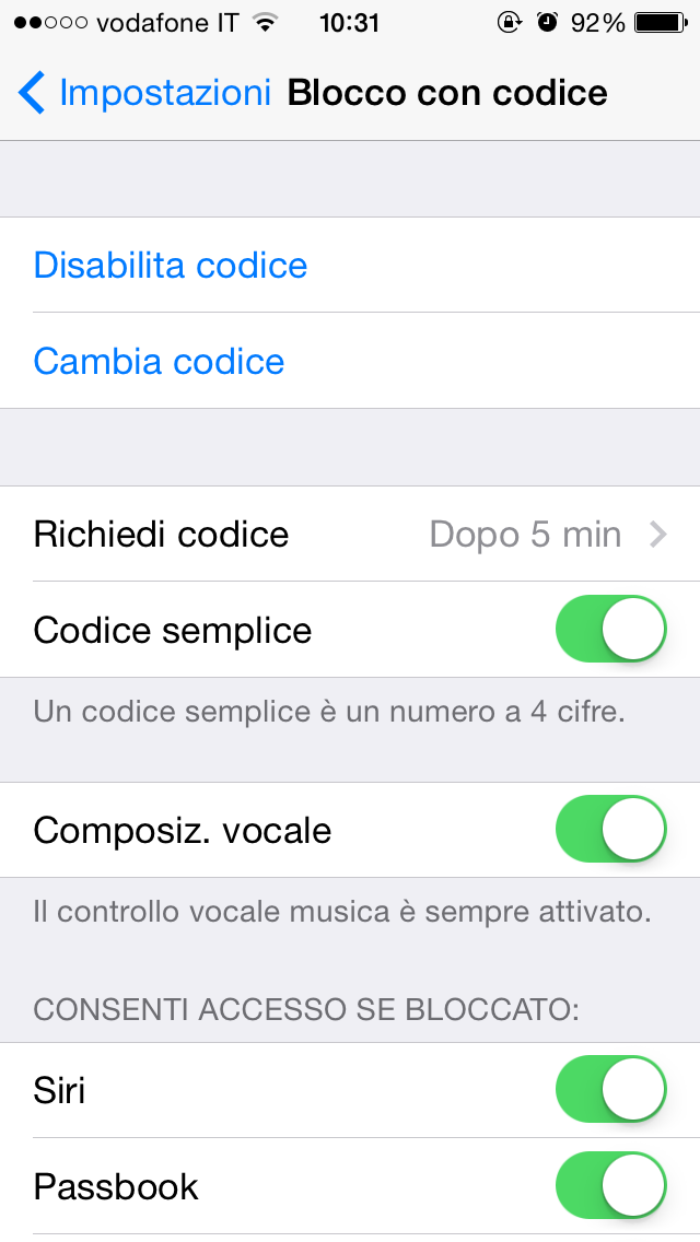 Se doverlo inserire tutte le volte vi infastidisce, un consiglio è quello di scegliere l’opzione “Dopo 5 minuti” o “Dopo 15 minuti” nel menù Richiedi codice all’interno di Impostazioni > Codice: in questo modo i vostri iDevice lo richiederanno soltanto dopo tale periodo di inattività a seguito del blocco del display.