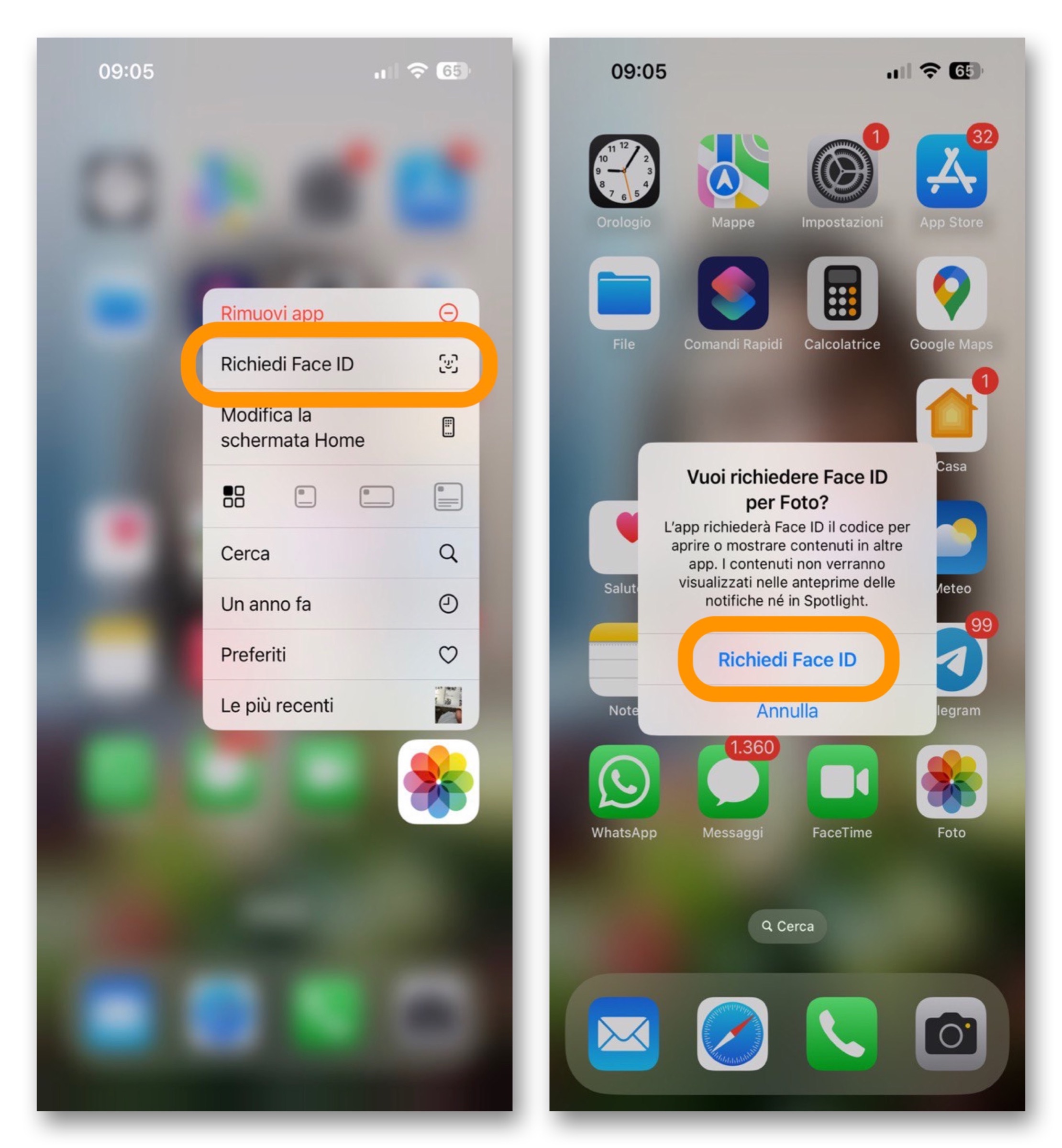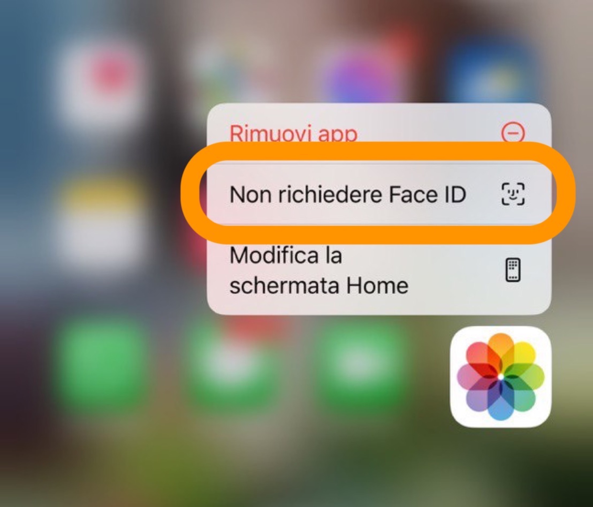 - non appena appare il menu contestuale, selezionate l’opzione Richiedi Face ID;